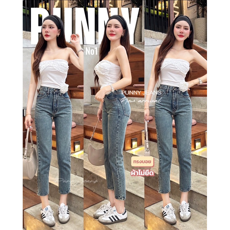 ?Punny Jeans ยีนส์แฟชั่นทรงบอย งานผ้าไม่ยืดทรงสวยใส่สบายเนื้อผ้าดีโทนสีสนิม