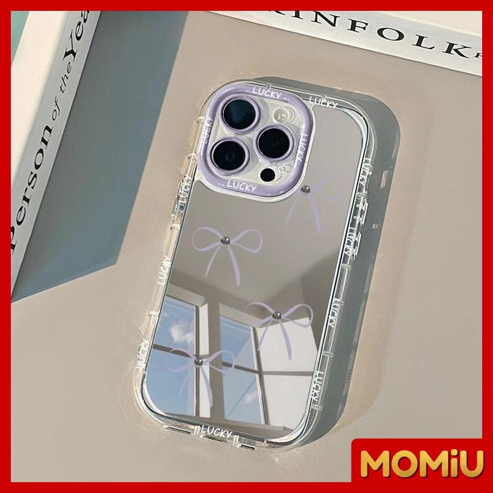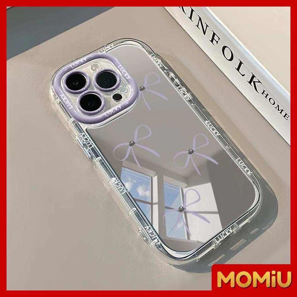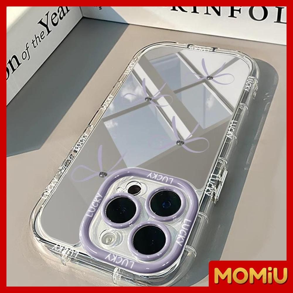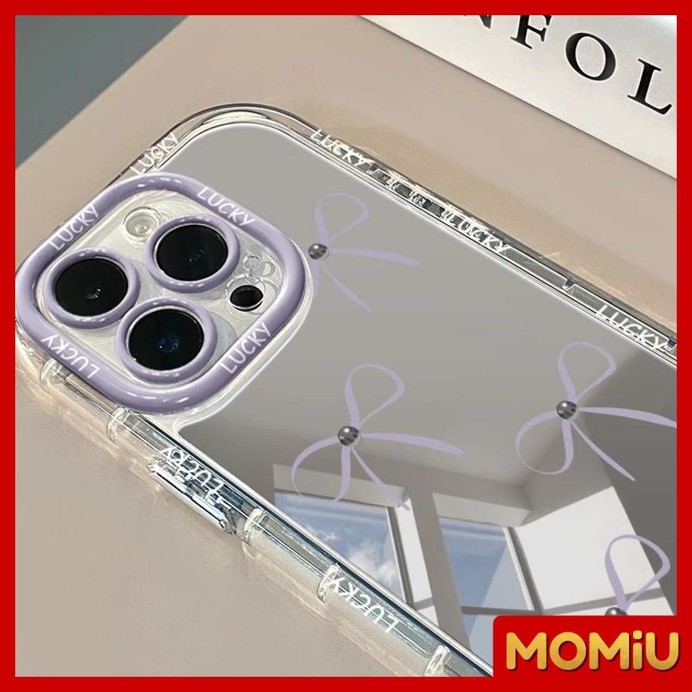 MOMiU – เข้ากันได้สำหรับ เคสไอโฟน11 เคส iphone 16 Pro Max 7Plus XR 12 13 14 15 กระจกเงา ถุงลมนิรภัย โบว์สีม่วง