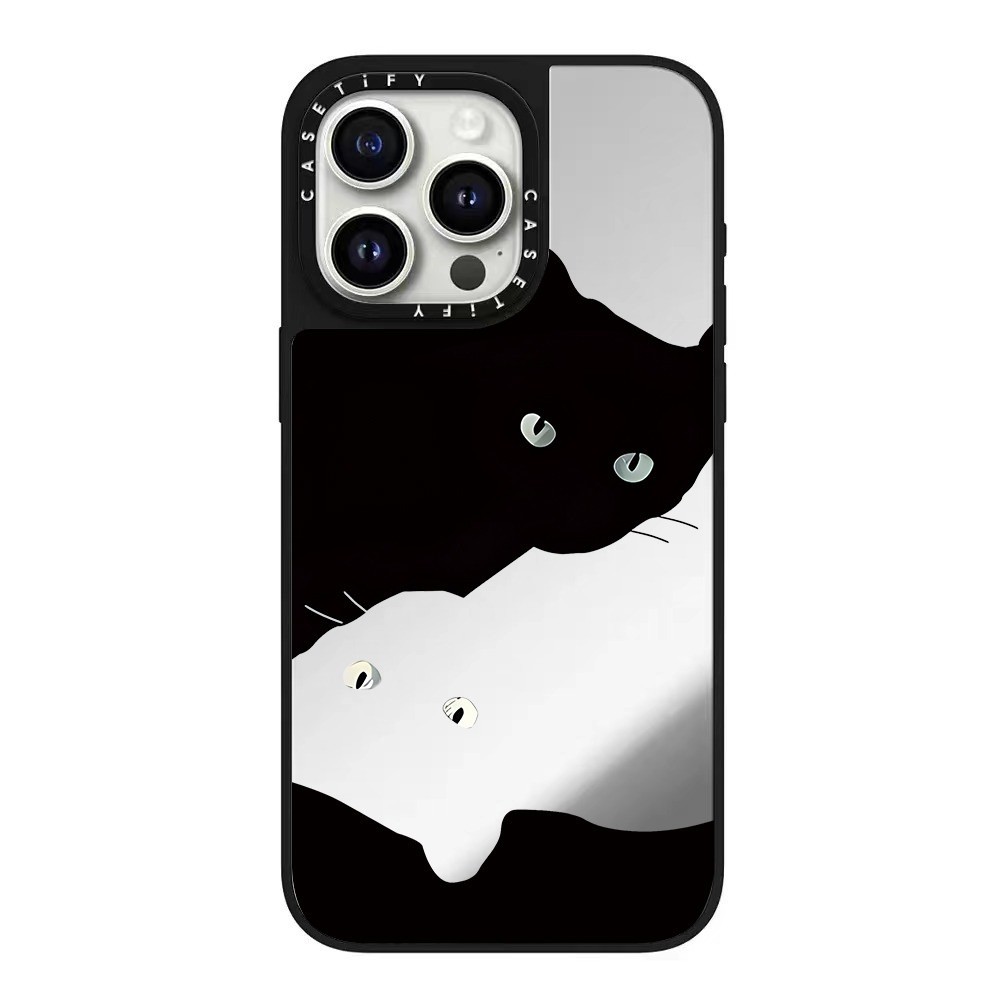 Casetif แมวน่ารักเงินกระจกเคสโทรศัพท์IPhone 11 12 13 14 15 16 Pro Max 15 16 Plus X XS Max XR 12 13 Mini 16proคุณภาพสูงเคสแข็งกันกระแทก