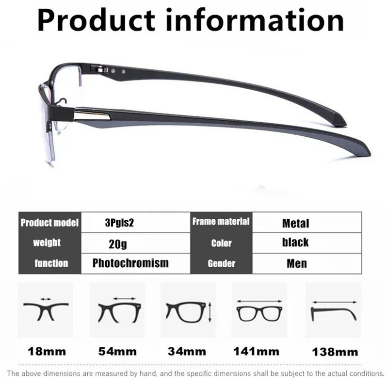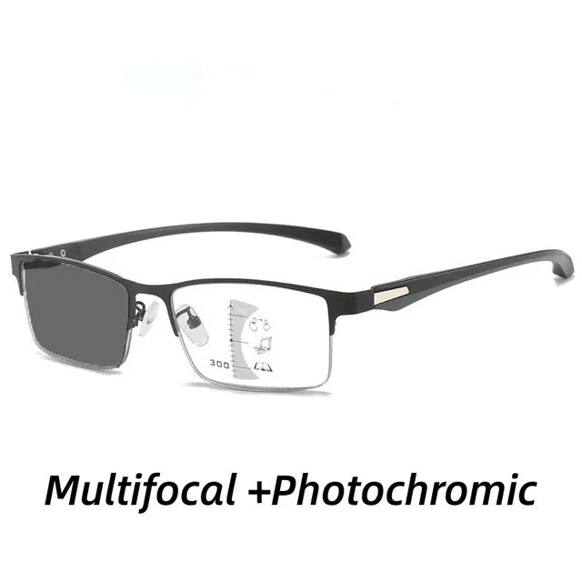 Progressive Multifocal Photochromic แว่นตาอ่านหนังสือ Anti-blue Light Far Sight แว่นตาผู้ชายครึ่งกรอบธุรกิจแว่นตาสายตายาว