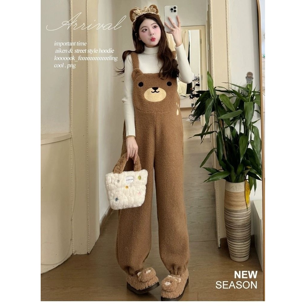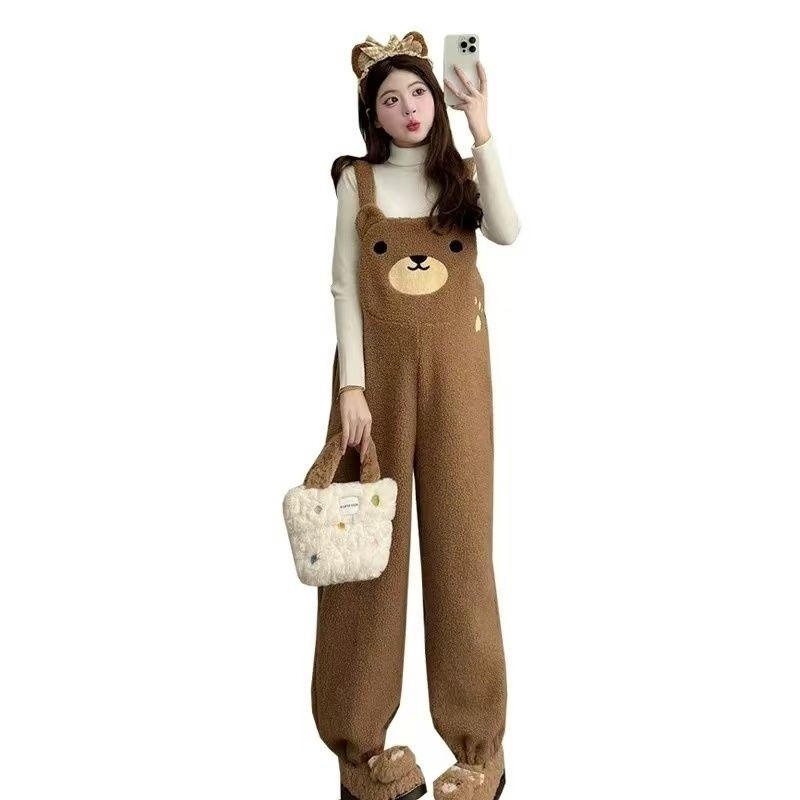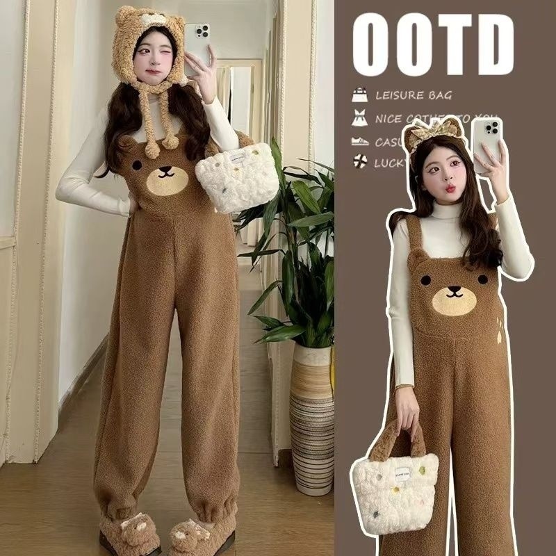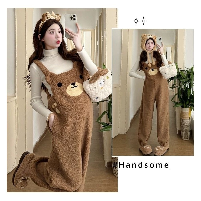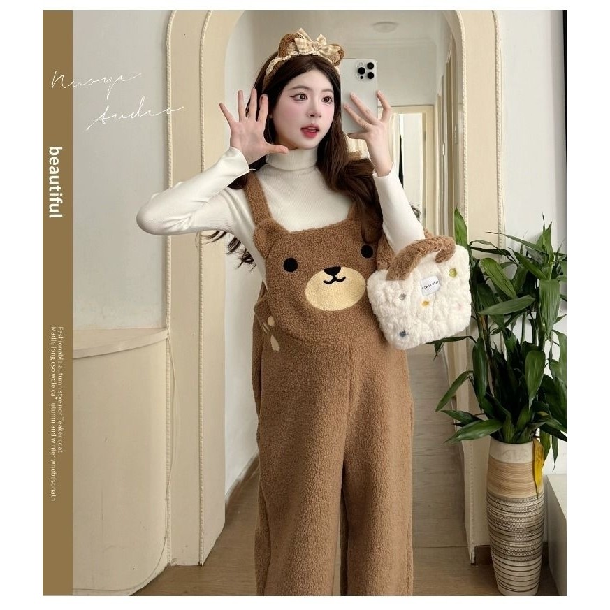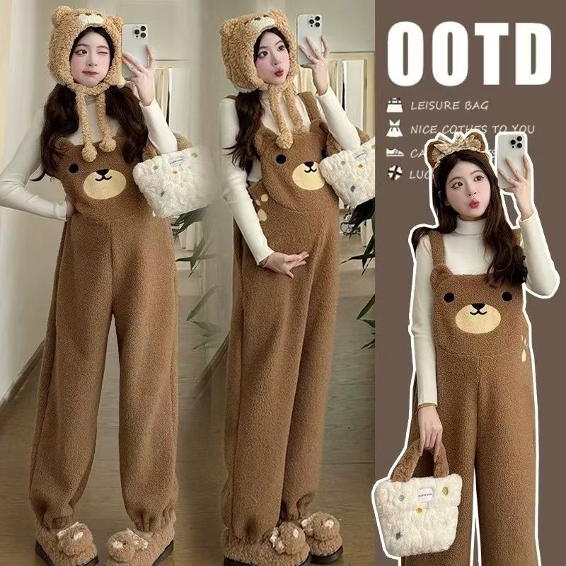 ชุดสองชิ้นขนาดใหญ่สำหรับฤดูใบไม้ร่วงและฤดูหนาวชุดฤดูใบไม้ร่วงหนา2024ใหม่ชุดกำมะหยี่เนื้อแกะคุณภาพสูงชุดคลุมท้องชุดเอี๊ยม