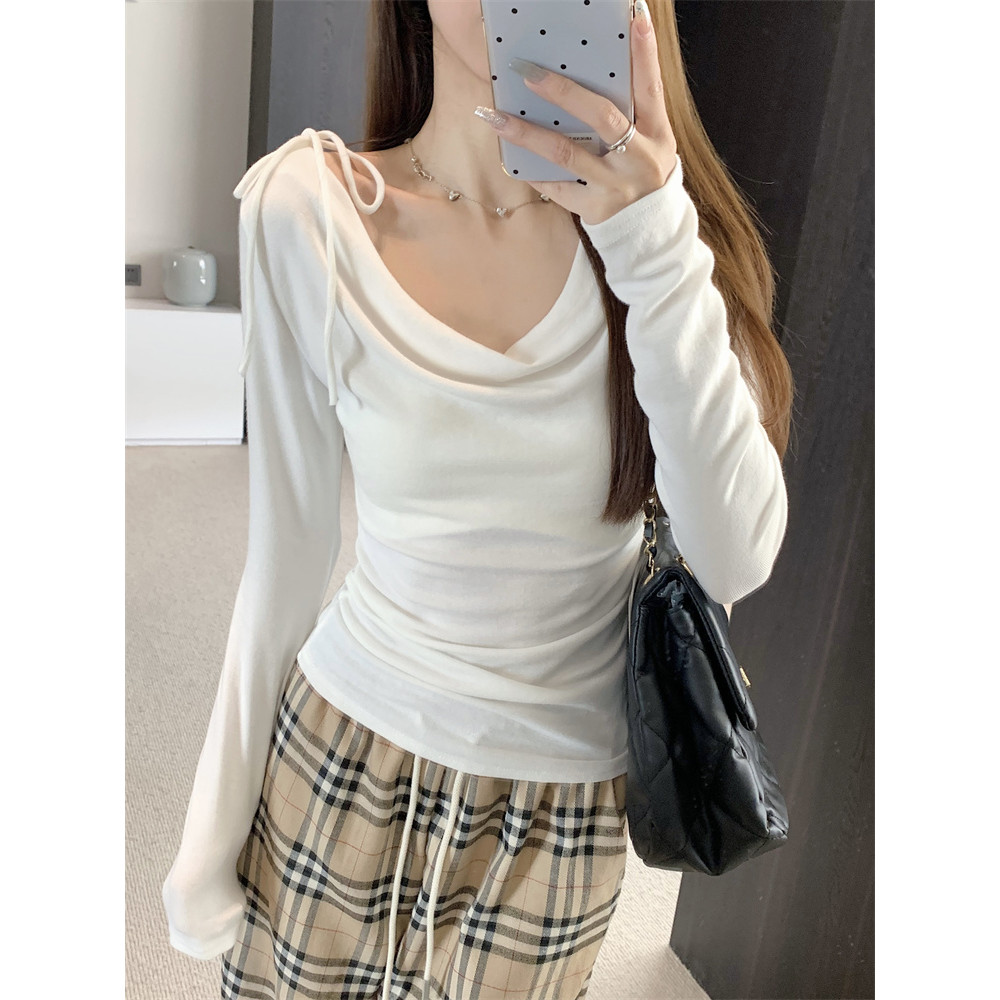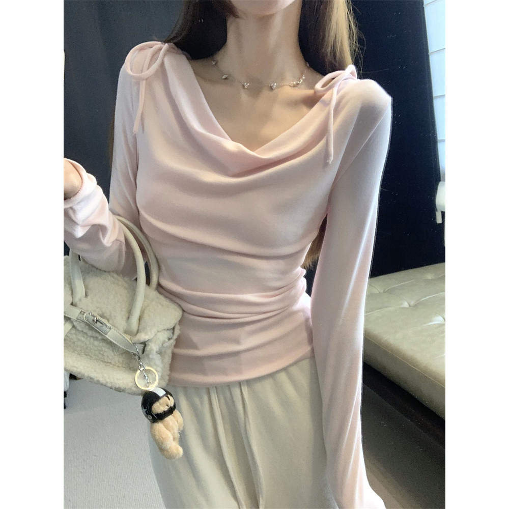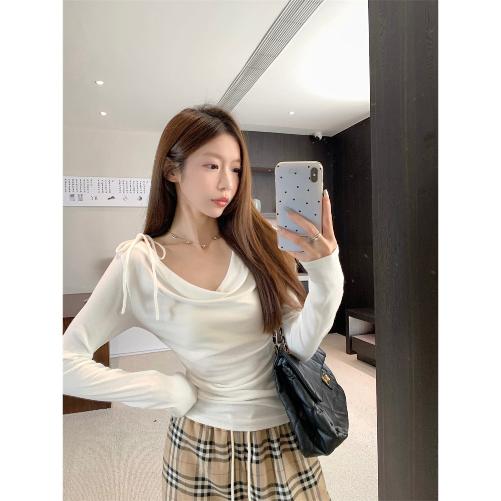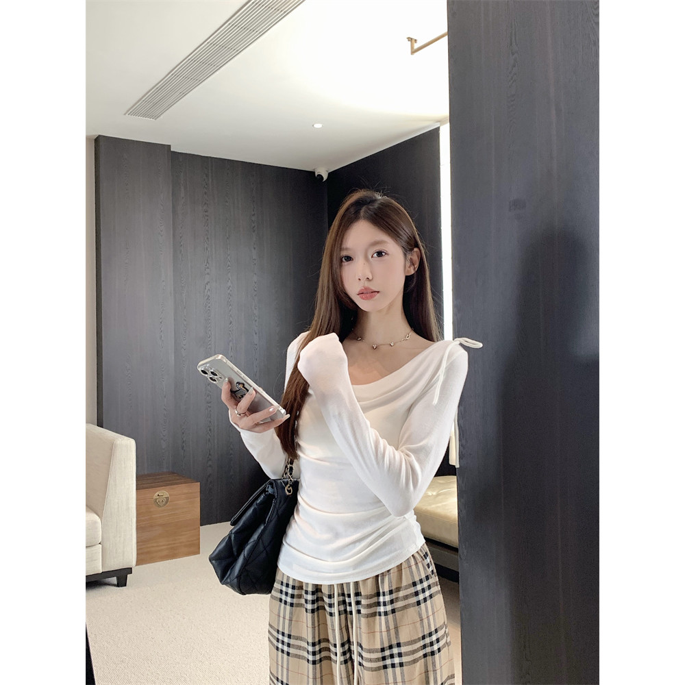 Betty house?พร้อมส่ง เสื้อยืดโบว์สไตล์เกาหลี แขนยาวเข้ารูปอ่อนโยน