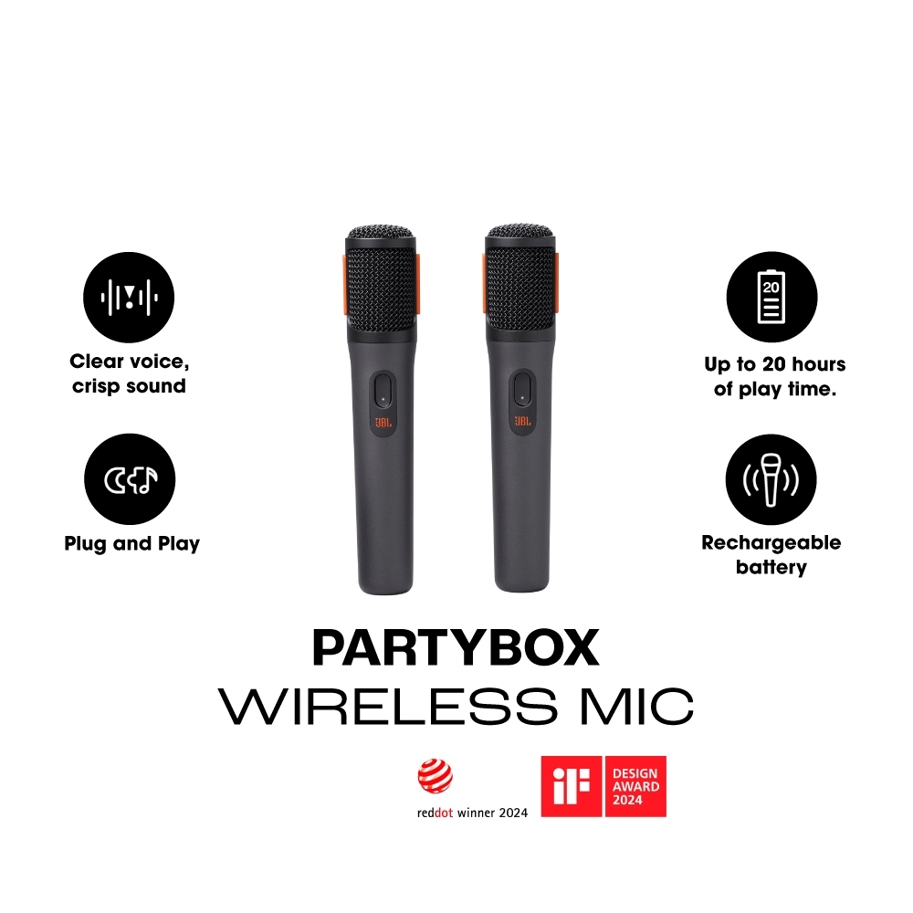 เจบีแอล กล่องปาร์ตี้ ไมโครโฟนไร้สายไมโครโฟนคู่ใสใช้งานง่ายขึ้นเหมาะมากสําหรับร้องเพลงกลางแจ้งชุดไมโครโฟนไร้สาย
