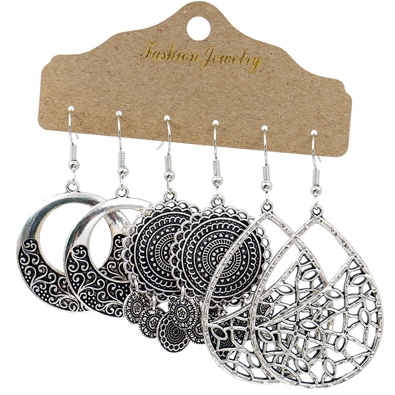 3คู่/เซ็ตโบฮีเมียย้อนยุคต่างหูชุดชาติพันธุ์สีเงินใบดอกไม้เรขาคณิตพู่ต่างหูผู้หญิงอินเดีย2025เครื่องประดับ