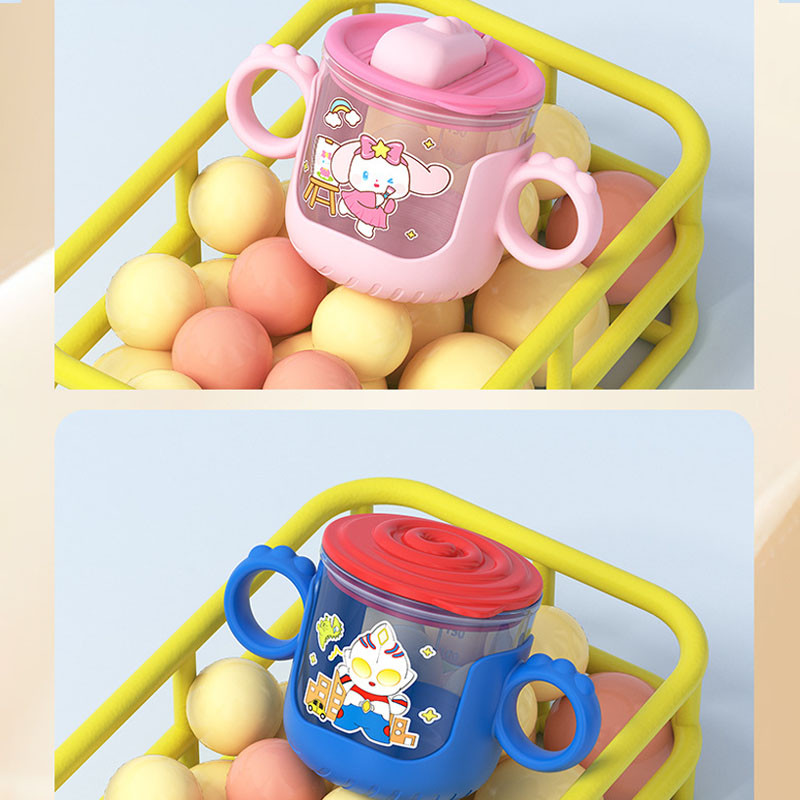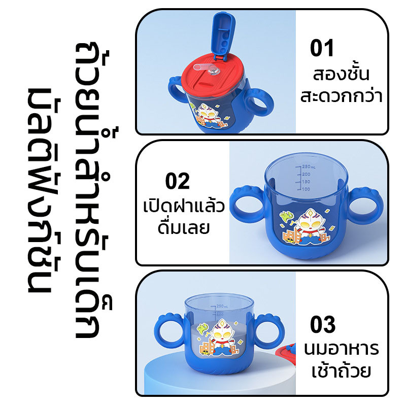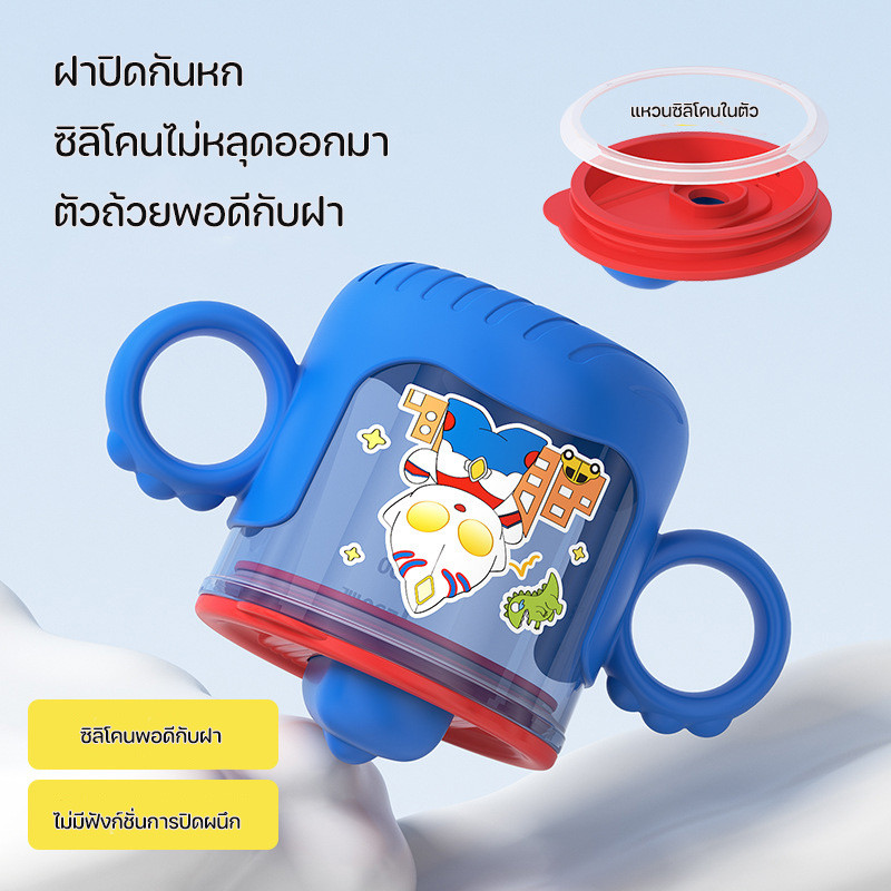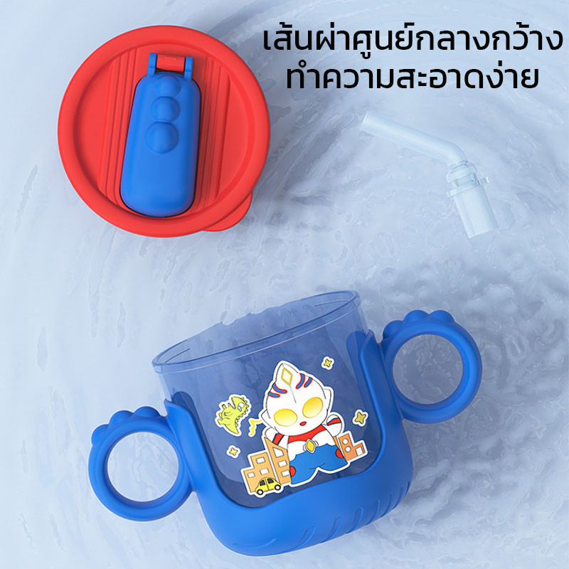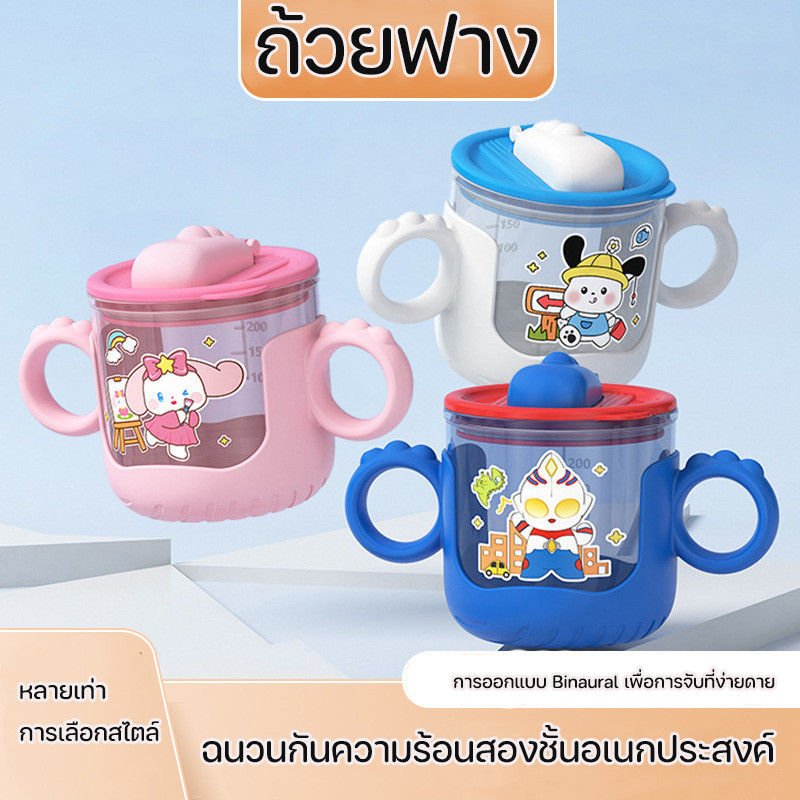 COD 280 มล แก้วน้ําสําหรับเด็ก น่ารักดีไซน์การ์ตูน หลอดสองด้าม ถ้วยการเรียนรู้เครื่องชั่งสําหรับทารก