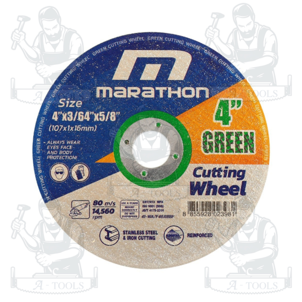 MARATHON แผ่นตัด ใบตัด 4นิ้ว หนา 1.0มม. รุ่น GREEN CUT สีเขียว (ขายยกแพ็ค25ใบ) สำหรับตัดเหล็ก/สแตนเลส **ส่งเร็ว ของแท้**