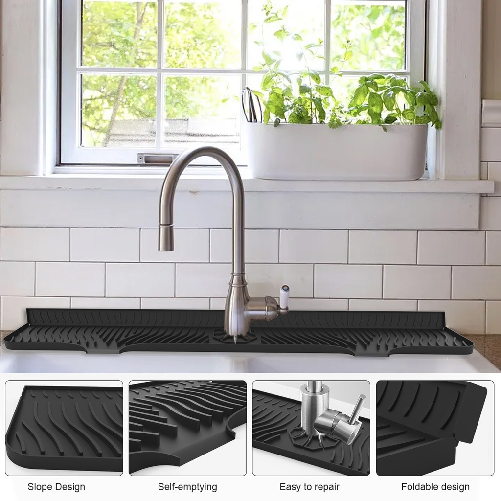 การออกแบบที่ปรับตัวได้ - เครื่องจับน้ำซิลิโคนของเราทำจากซิลิโคนเกรดอาหาร การออกแบบช่องเปิดที่ไม่เหมือนใครแต่ละด้านห่อหุ้มก๊อกน้ำอย่างแน่นหนาตัวป้องกันน้ำกระเซ็นโดยไม่ต้องตัด ออกแบบพับได้ไม่ต้องกังวลกับระยะห่างระหว่างผนังและก๊อกน้ำ เหมาะอ