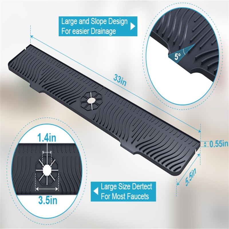 85เซนติเมตรซิลิโคนอ่างล้างจานสาดยามเสื่อ,จับก๊อกน้ําหยดถาด,ซิลิโคนยาวเสื่ออ่างล้างจานสําหรับห้องครัวห้องน้ํา,เคาน์เตอร์ระบายน้ําเสื่อ