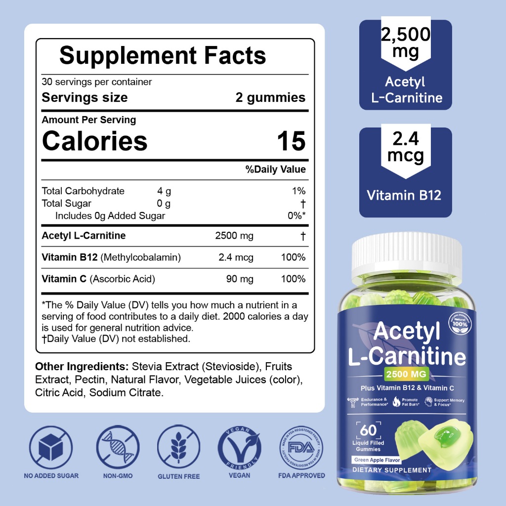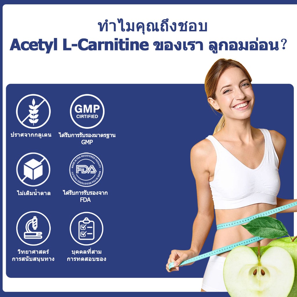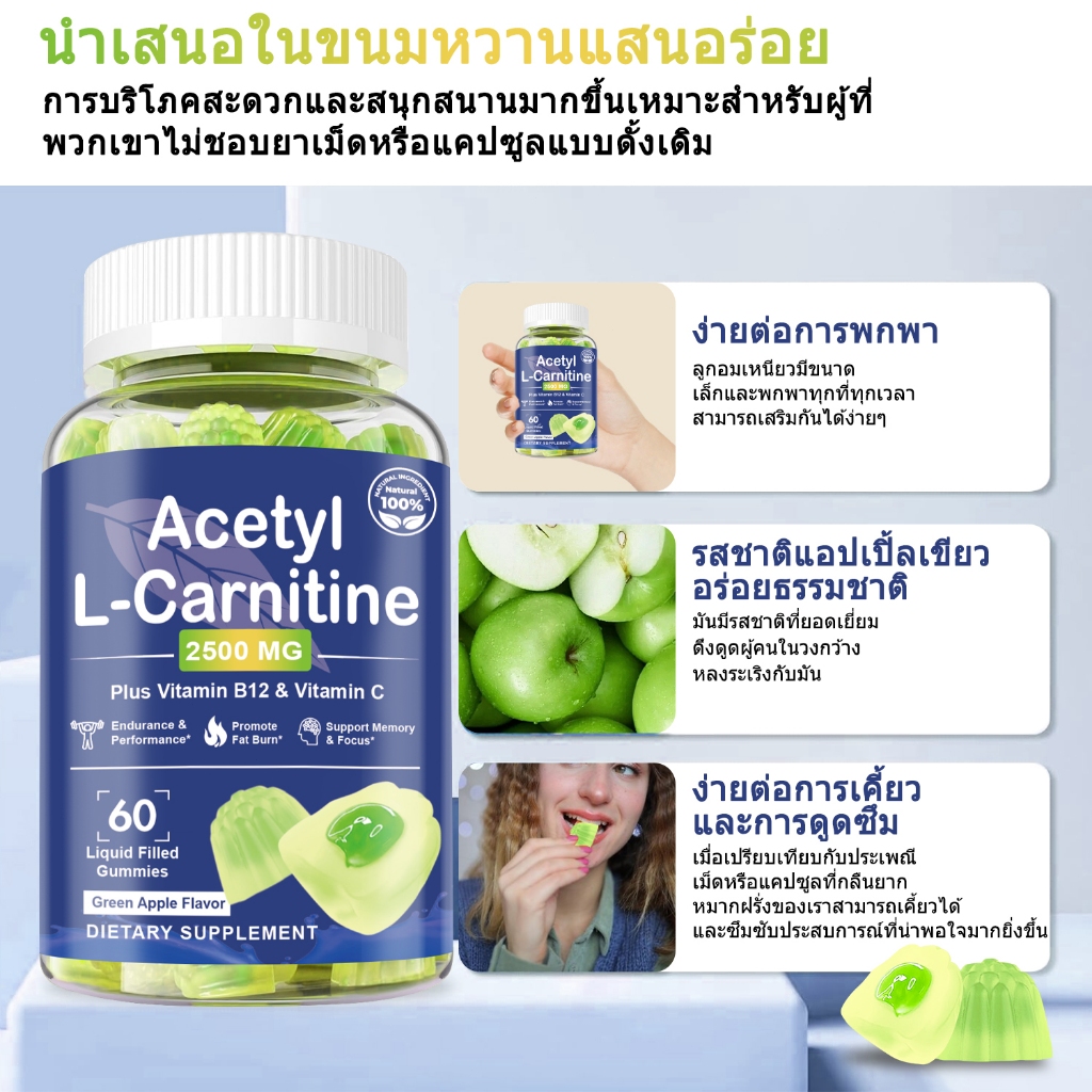 Omilay Acetyl L Carnitine 2500 mg แอลคาเนทีน L Carnitine Gummy ผลิตภัณฑ์เสริมอาหาร Carnitine 60 เม็ด