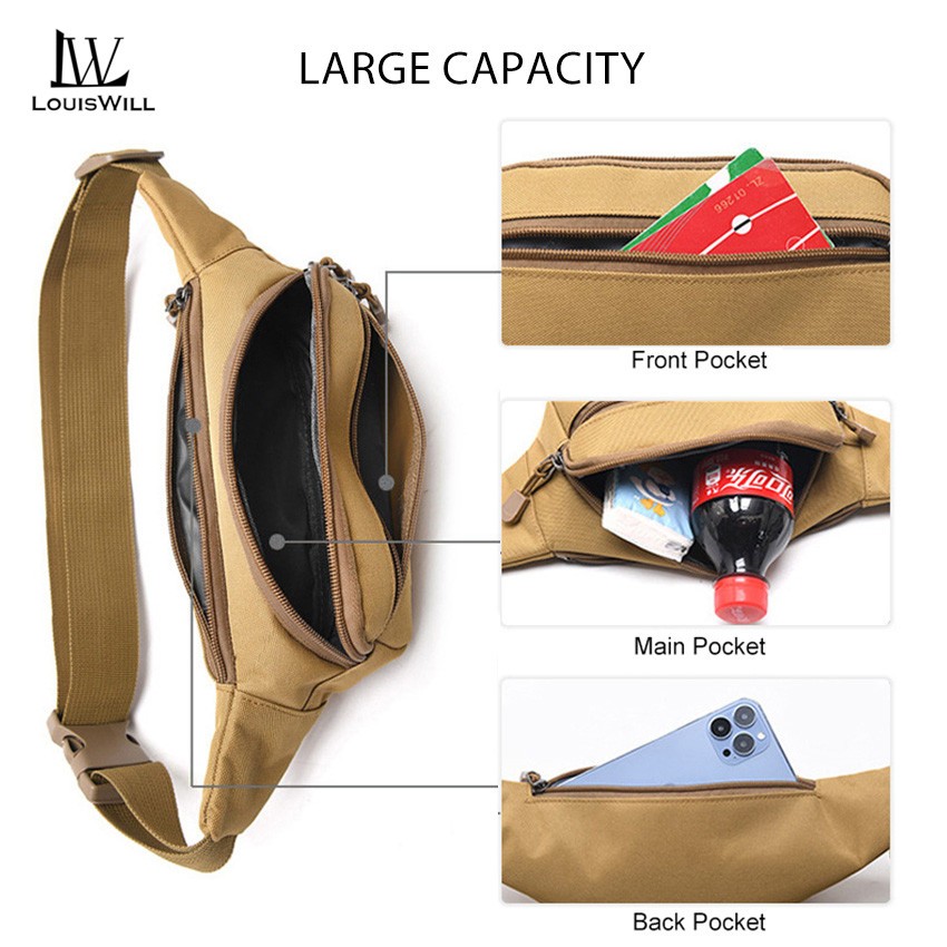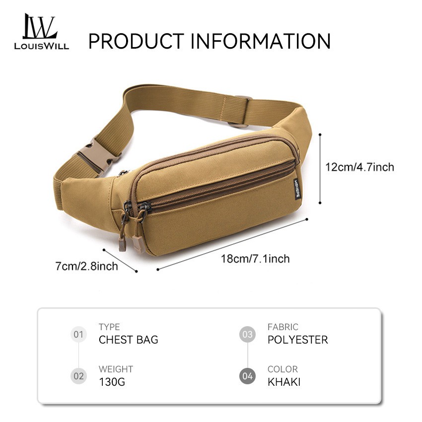Louiswill กีฬาเอวกระเป๋าแฟชั่นผู้ชายกระเป๋าผู้ชายหน้าอกกระเป๋ากระเป๋าสะพายกระเป๋ากีฬากันน้ําฟอร์ดวิ่งบอมกระเป๋ายิมแบบพก