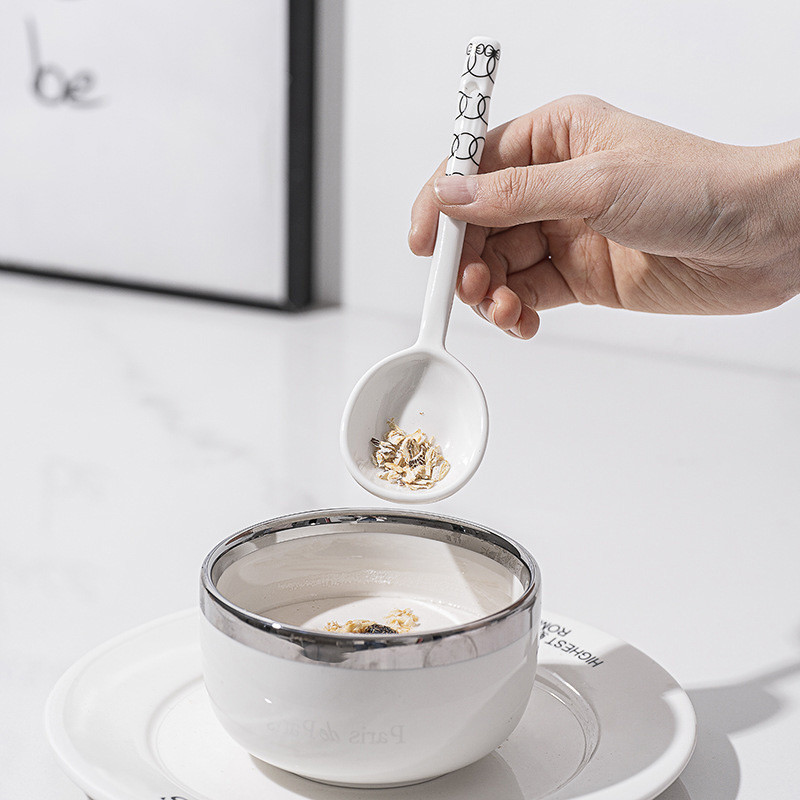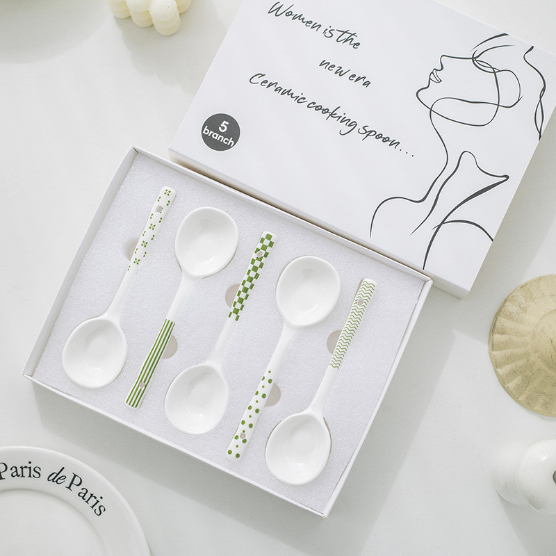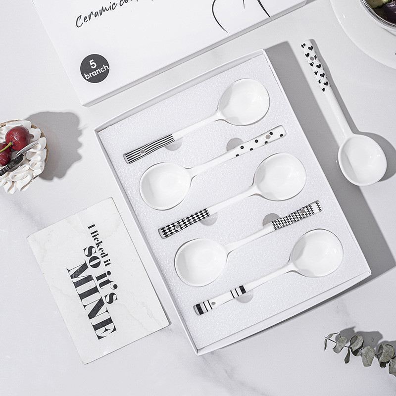 ช้อนเซรามิกกล่องของขวัญความงามสูงในครัวเรือนที่เรียบง่ายเฮปเบิร์นช้อนซุปด้ามยาวช้อนขนาดเล็กบนโต๊ะอาหารช้อนโจ๊ก