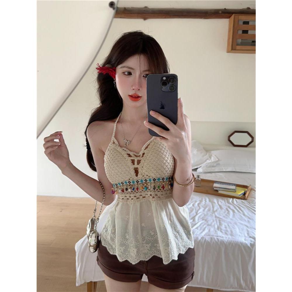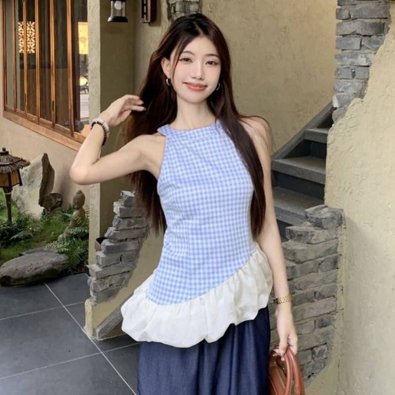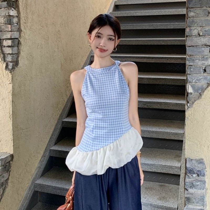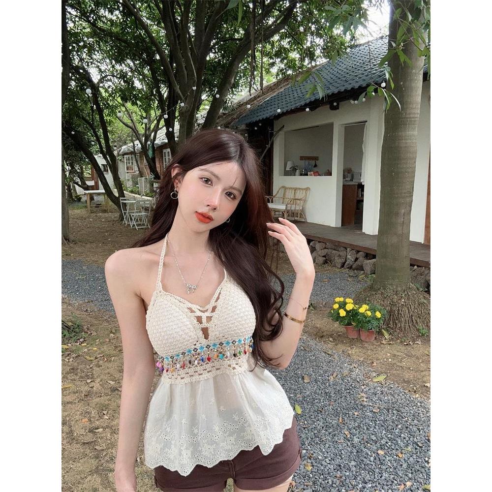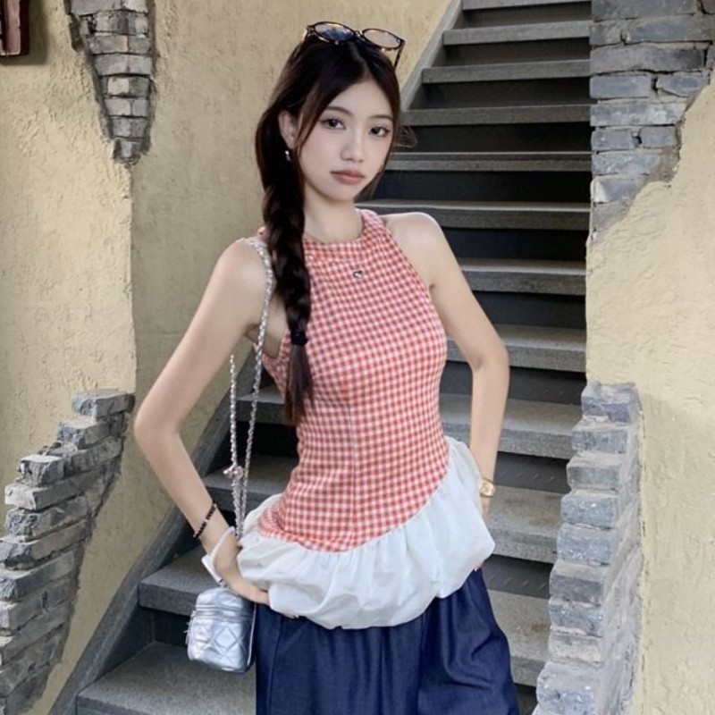 Serena-เสื้อกล้าม เว้าหลัง เข้ารูป เซ็กซี่ คอวี สีพื้น เสื้อแขนกุด ใส่สบาย แฟชั่น ผู้หญิง สไตล์เกาหลี