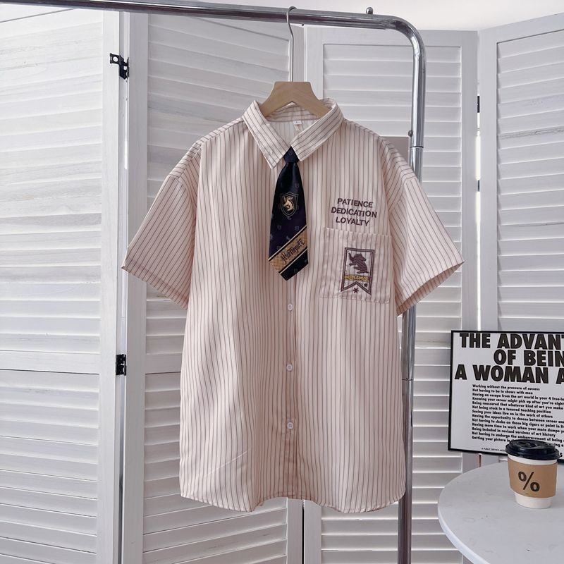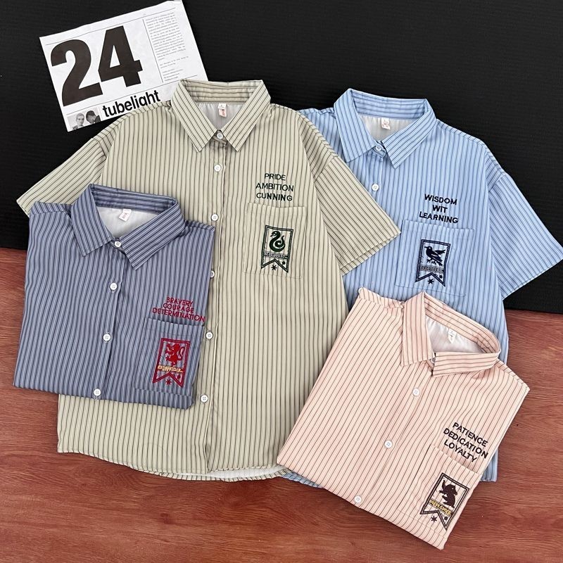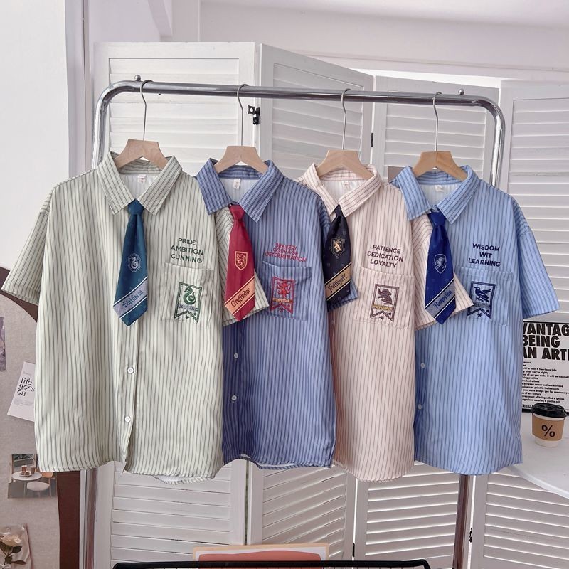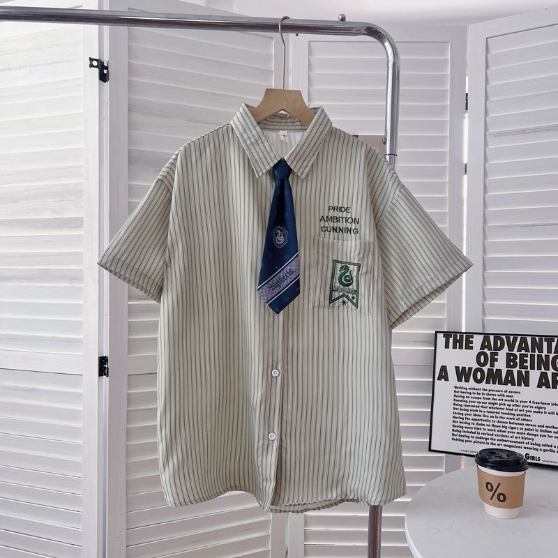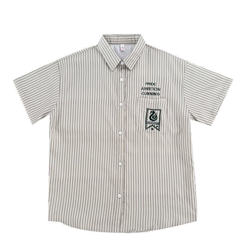 Harry Potter Preppy สไตล์เสื้อแขนสั้นนักเรียนมัธยมต้นเสื้อหลวมแขนสั้นลายเสื้อ Slytherin Glen