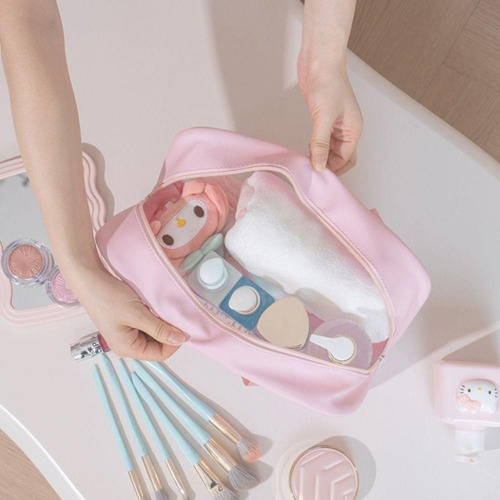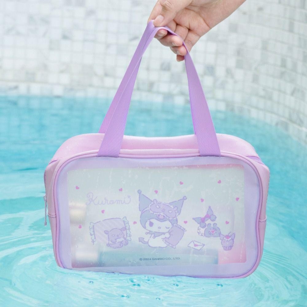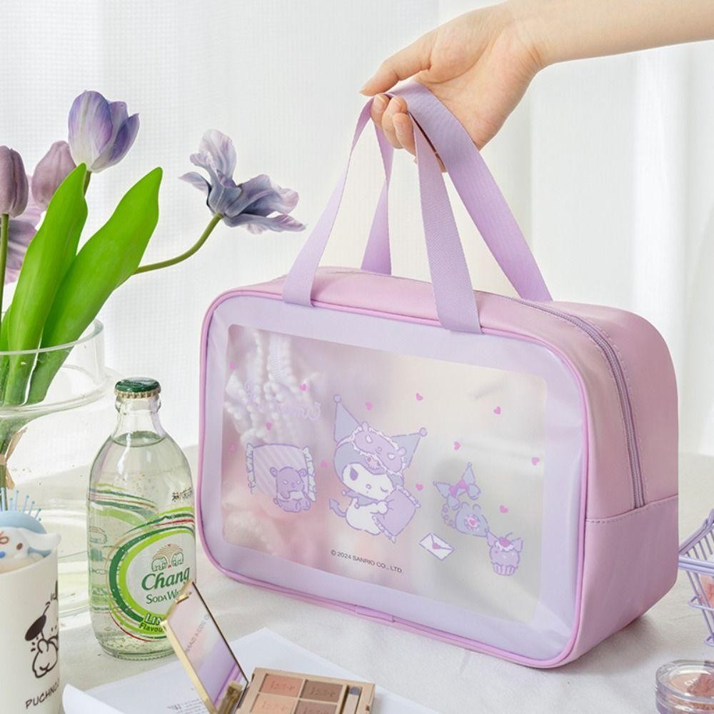 Rowans กระเป๋าเครื่องสําอาง Sanrio, กระเป๋าใส่อุปกรณ์อาบน้ําสําหรับเดินทางกันน้ําลายการ์ตูน, กระเป๋าใส่ว่ายน้ําความจุขนาดใหญ่ PU นุ่มใสแบบพกพา