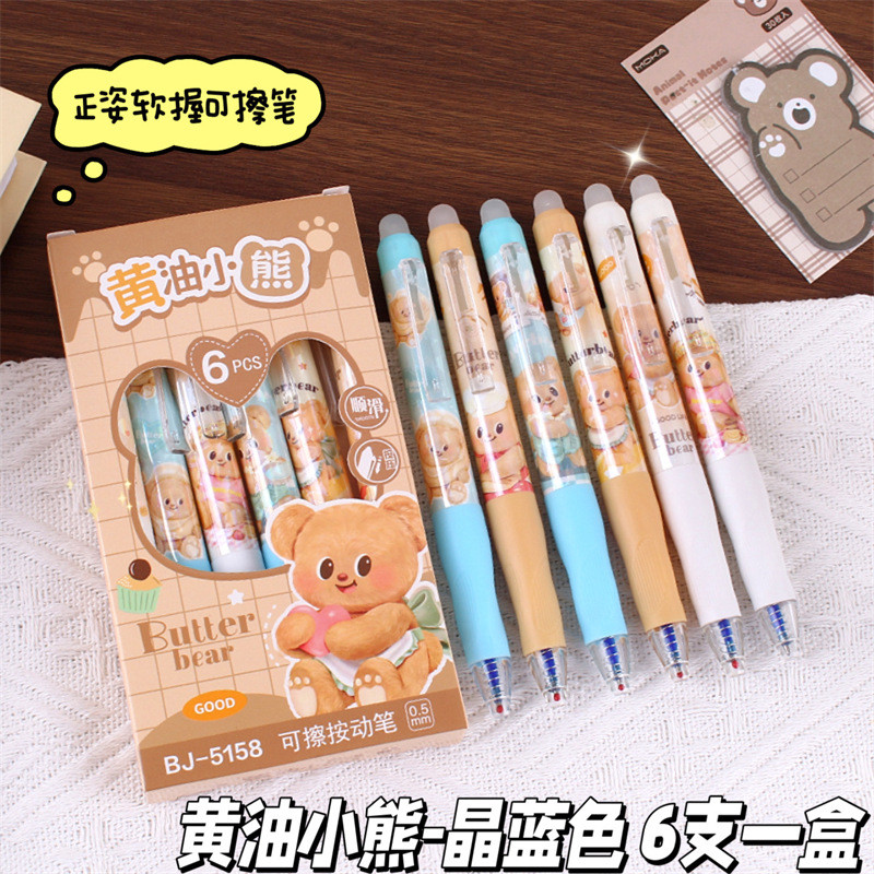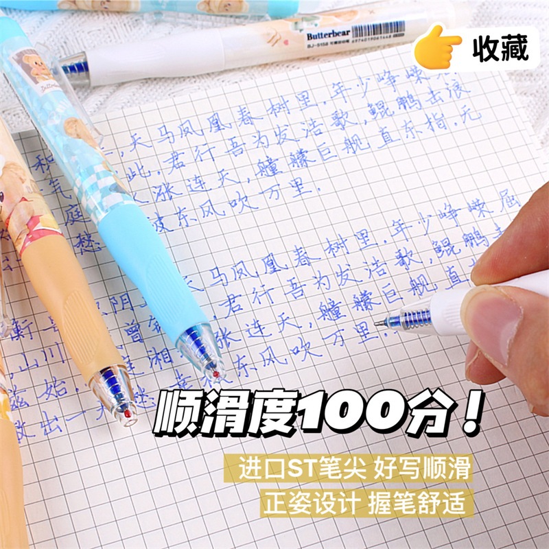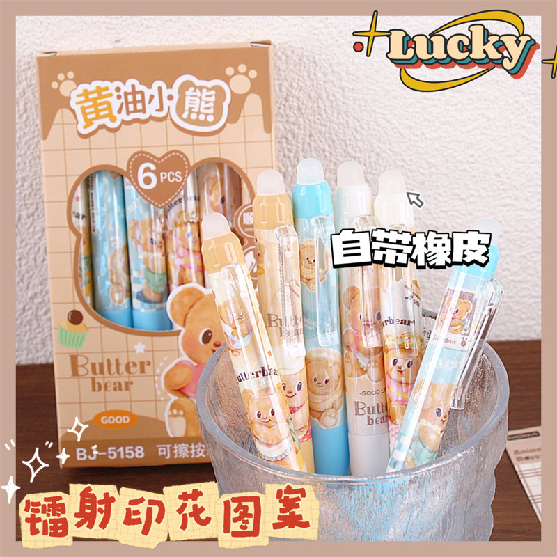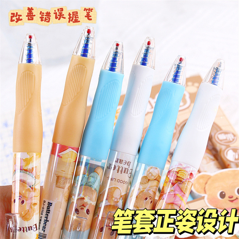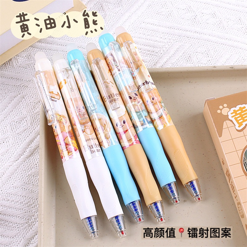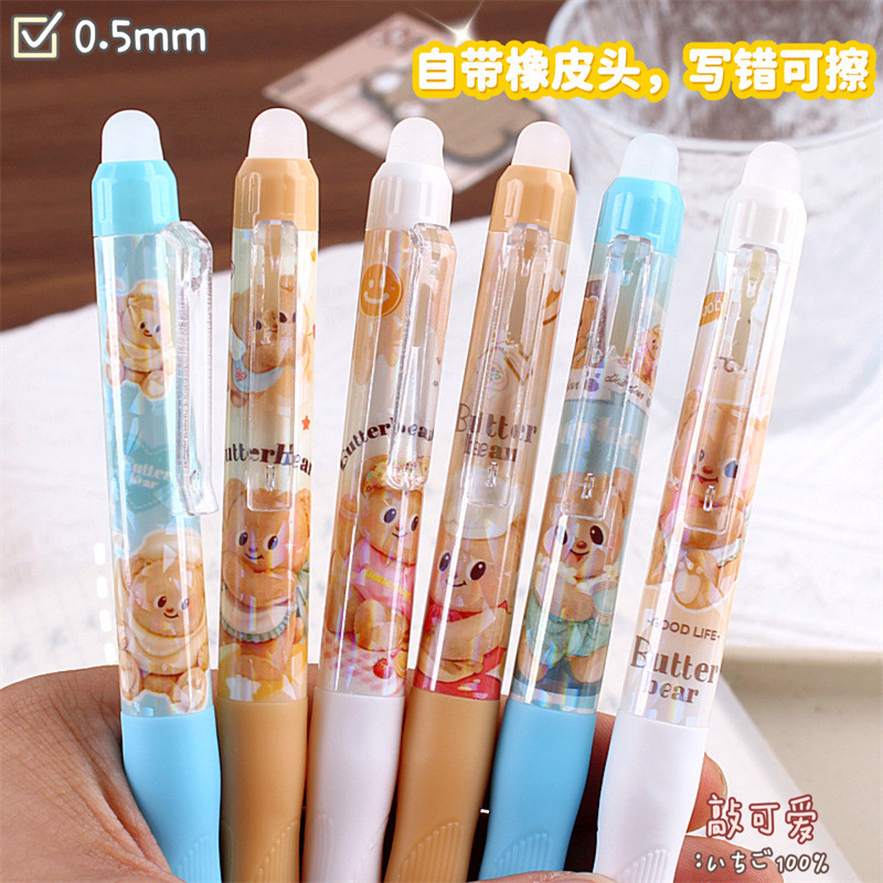 นักเรียน Positive Posture Erasable Pen Butter Bear Press Gel Pen 0.5mm การ์ตูนมูลค่าสูง Easy-to-Erase Pen