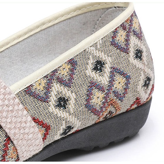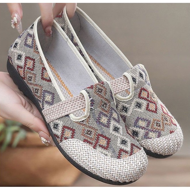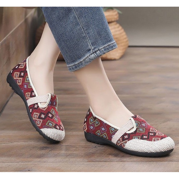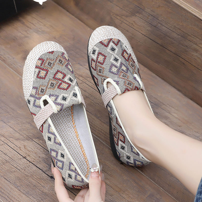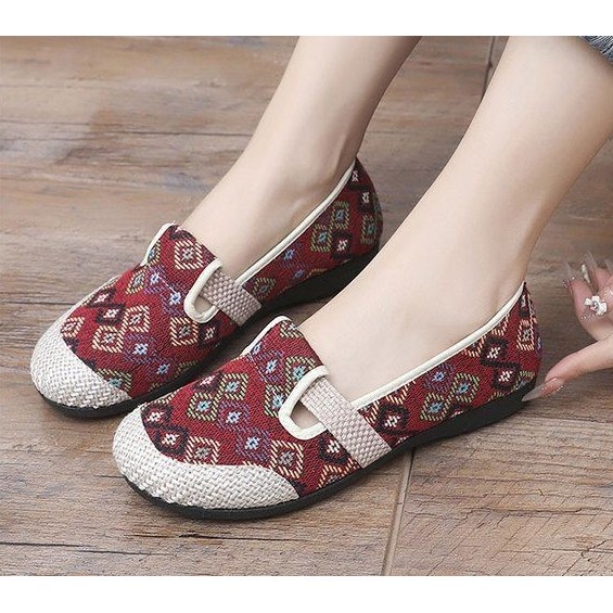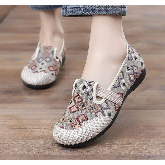 go?รองเท้าผ้าใบผู้หญิง ถักเปีย รองเทาสลิปออน ลำลอง แฟชั่น ยืดหยุ่นได้ดี รูปแบบทางเรขาคณิต ไม่เจ็บเท้า ระบายอากาศ P-046
