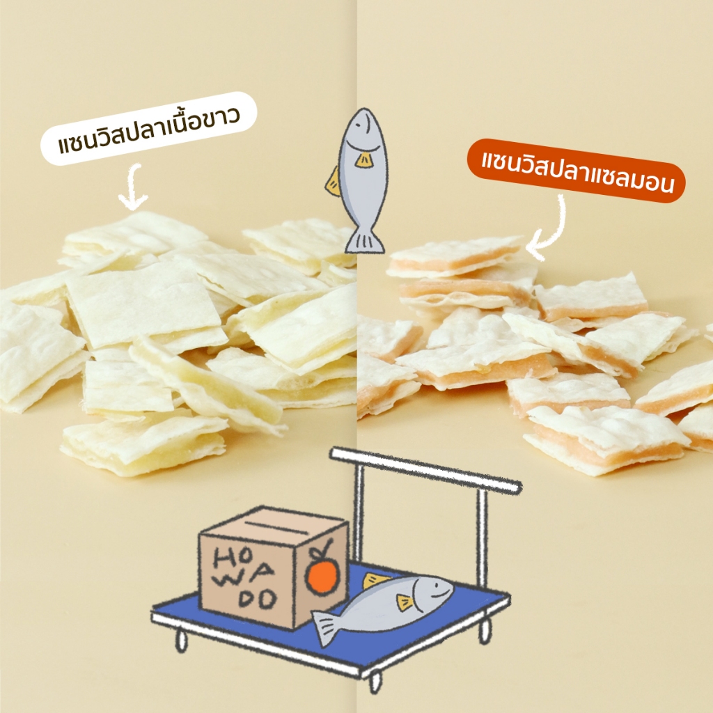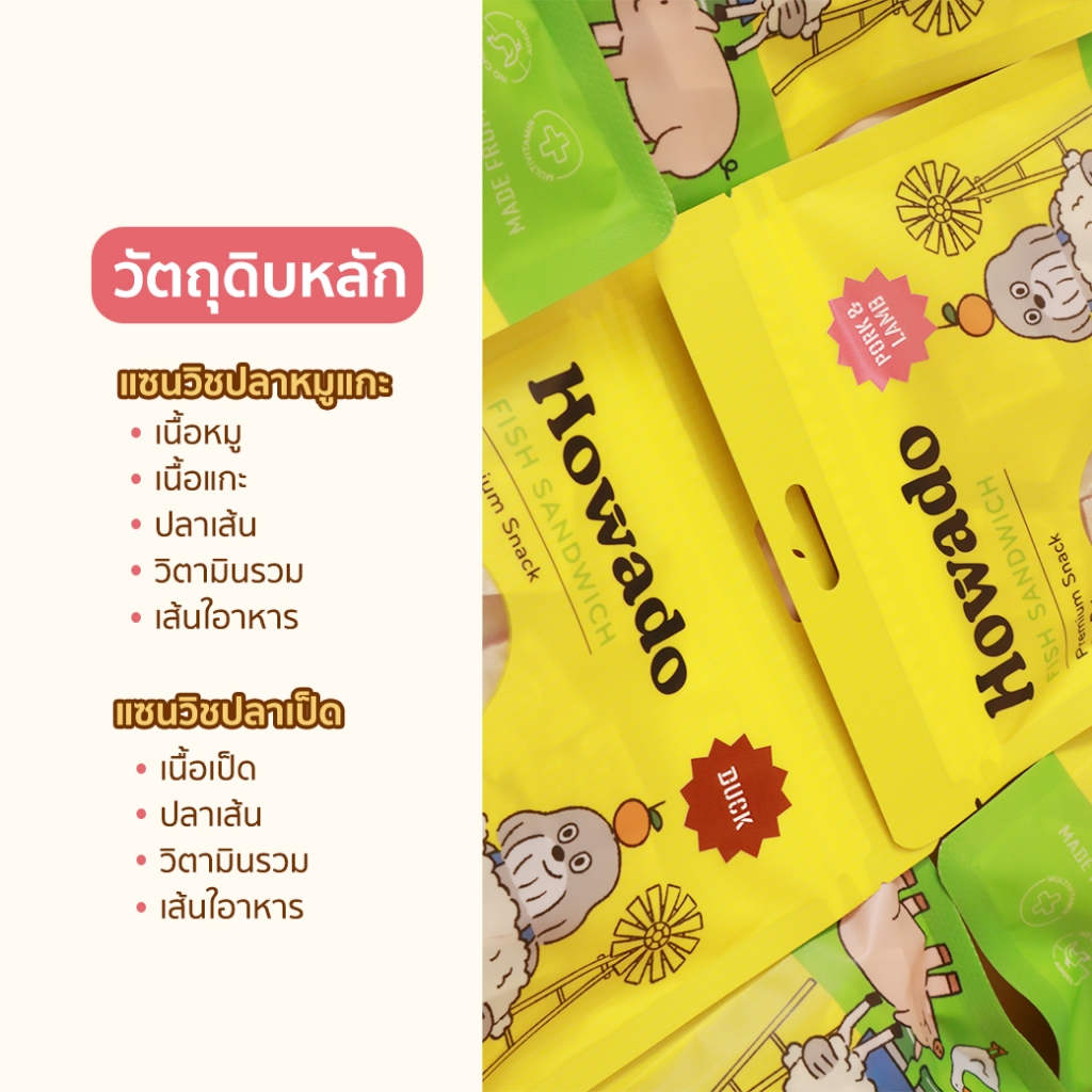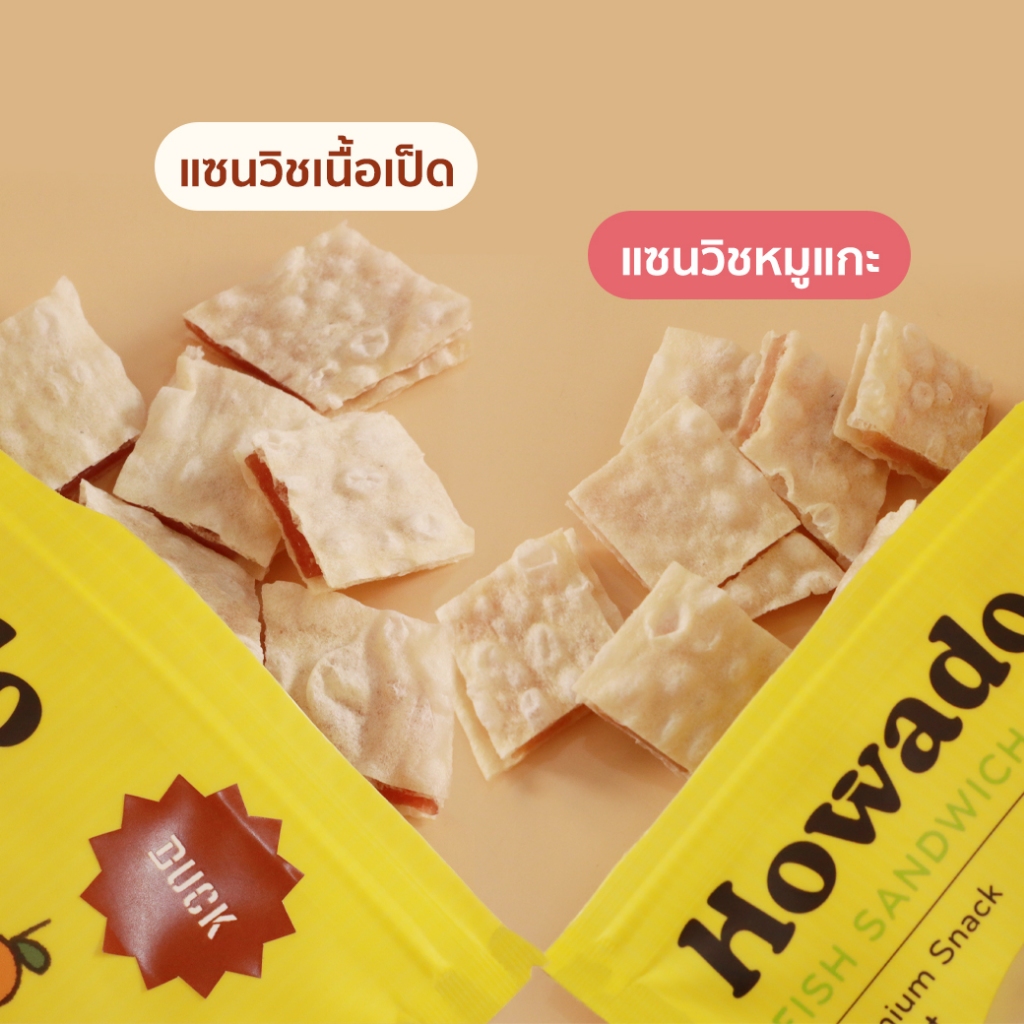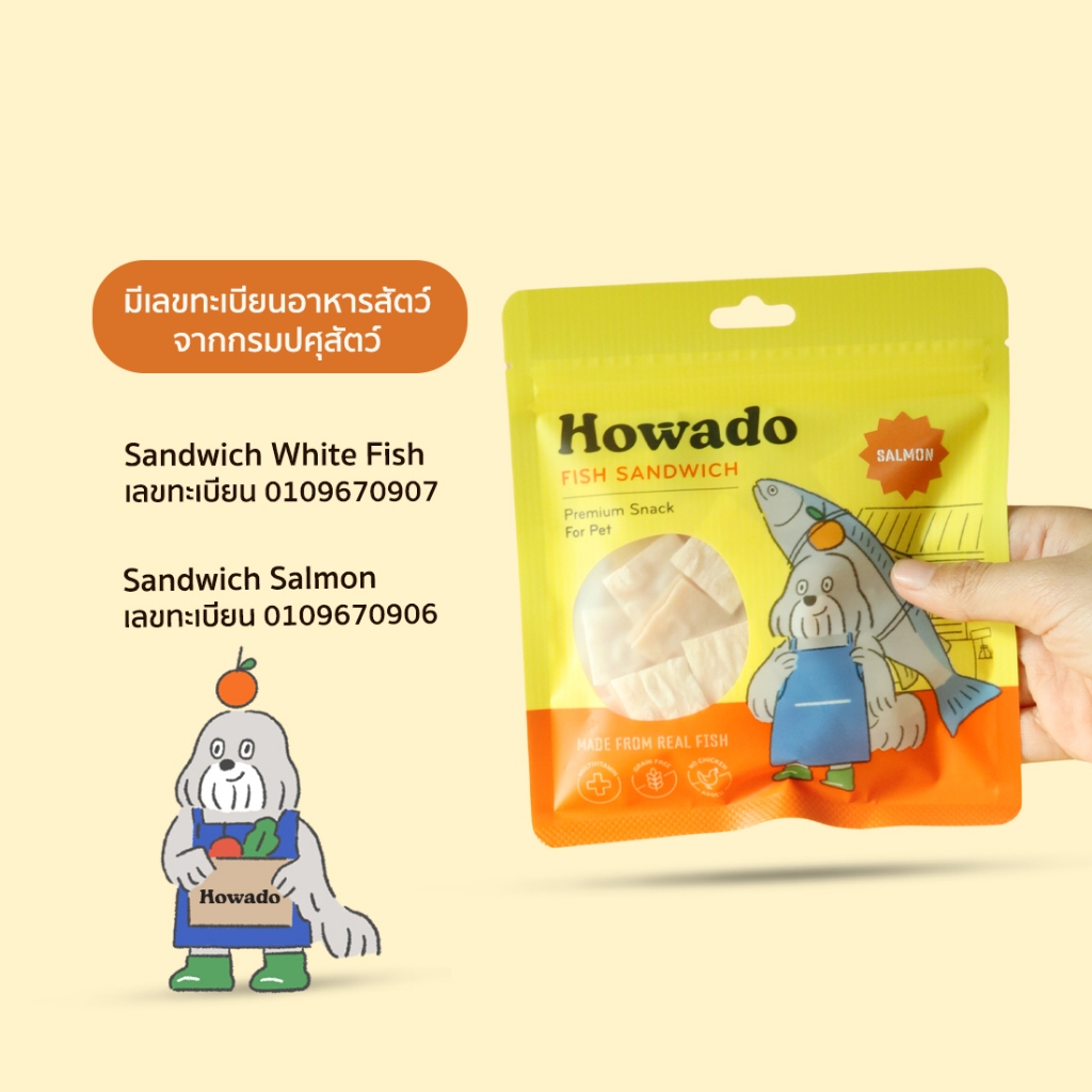 ขนมสุนัขเพื่อสุขภาพมีวิตามินรวม ขนมหมา แซนวิสปลาแซลมอน ปลาเนื้อขาว ทานได้ทั้งพันธุ์ใหญ่และพันธุ์เล็ก โฮวาโดะ Howado