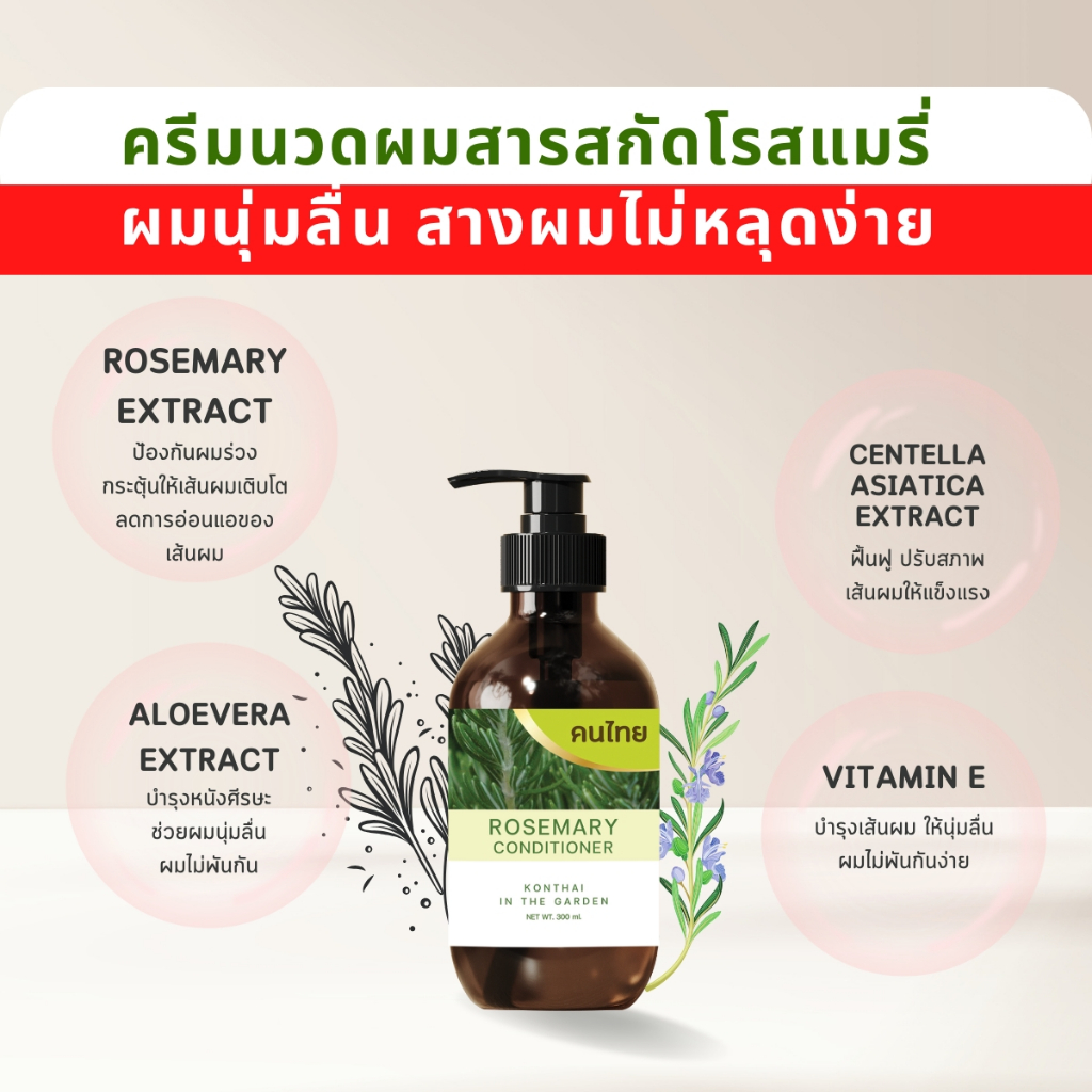 ครีมนวดผม คนไทยโรสแมรี่ สางผมไม่หลุดง่าย ผมไม่หลุดติดมือ ผมไม่พันกัน ครีมนวด ขนาด 300 ml.
