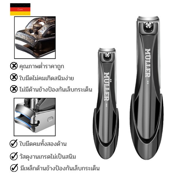 MULLER กรรไกรตัดเล็บสเตนเลสแท้เกรดไฮเอนด์ คมพิเศษป้องกันเล็บกระเด็น มาตรฐานเยอรมันนี ไร้สนิม วัสดุสแตนเลอย่างหนาและทนทาน