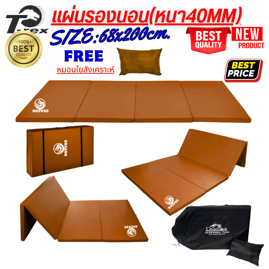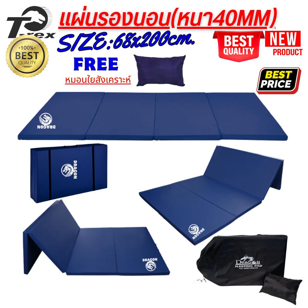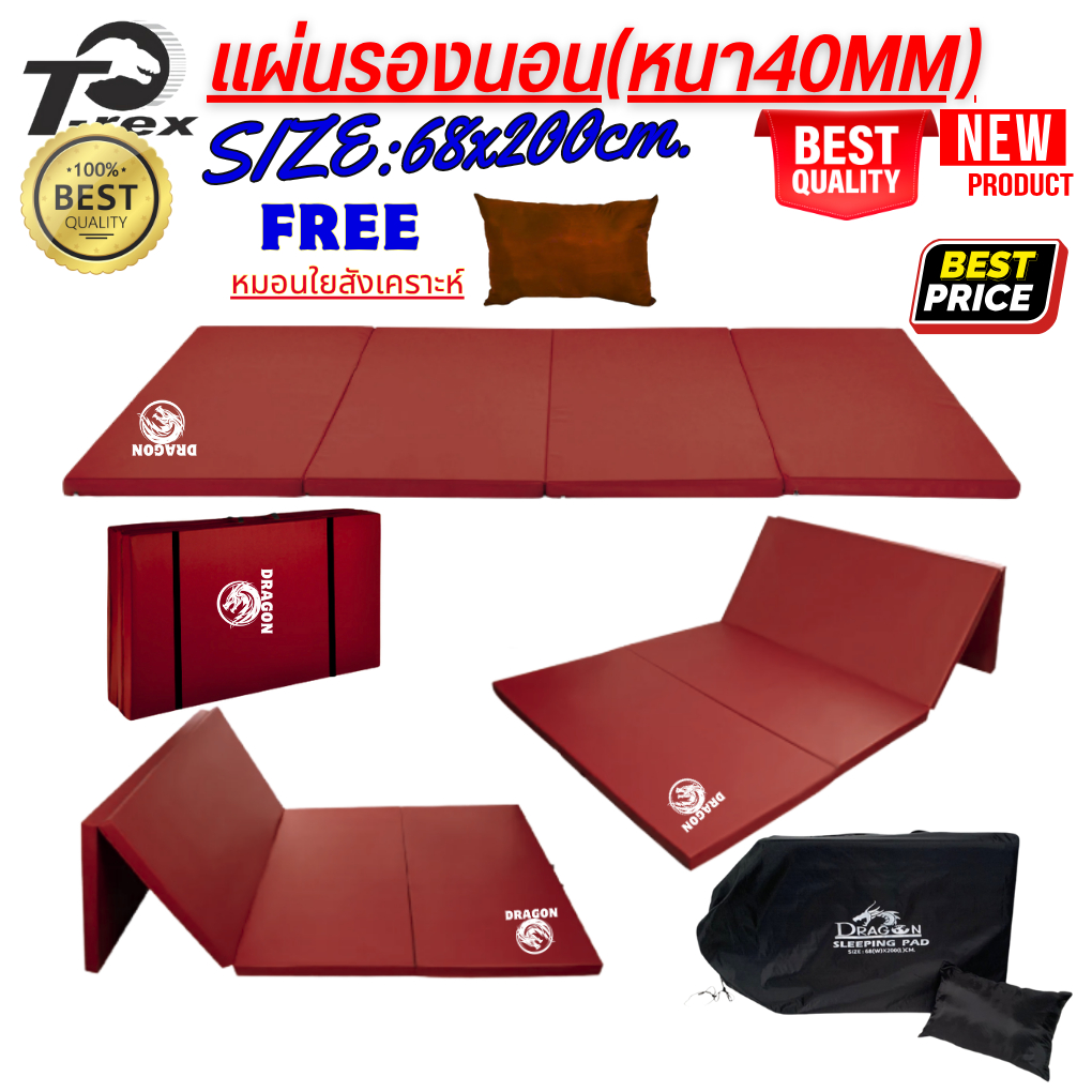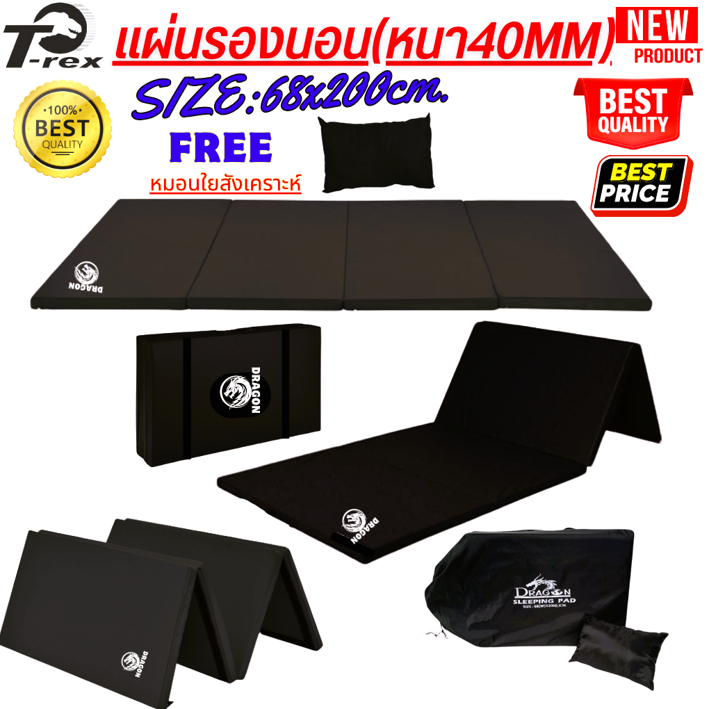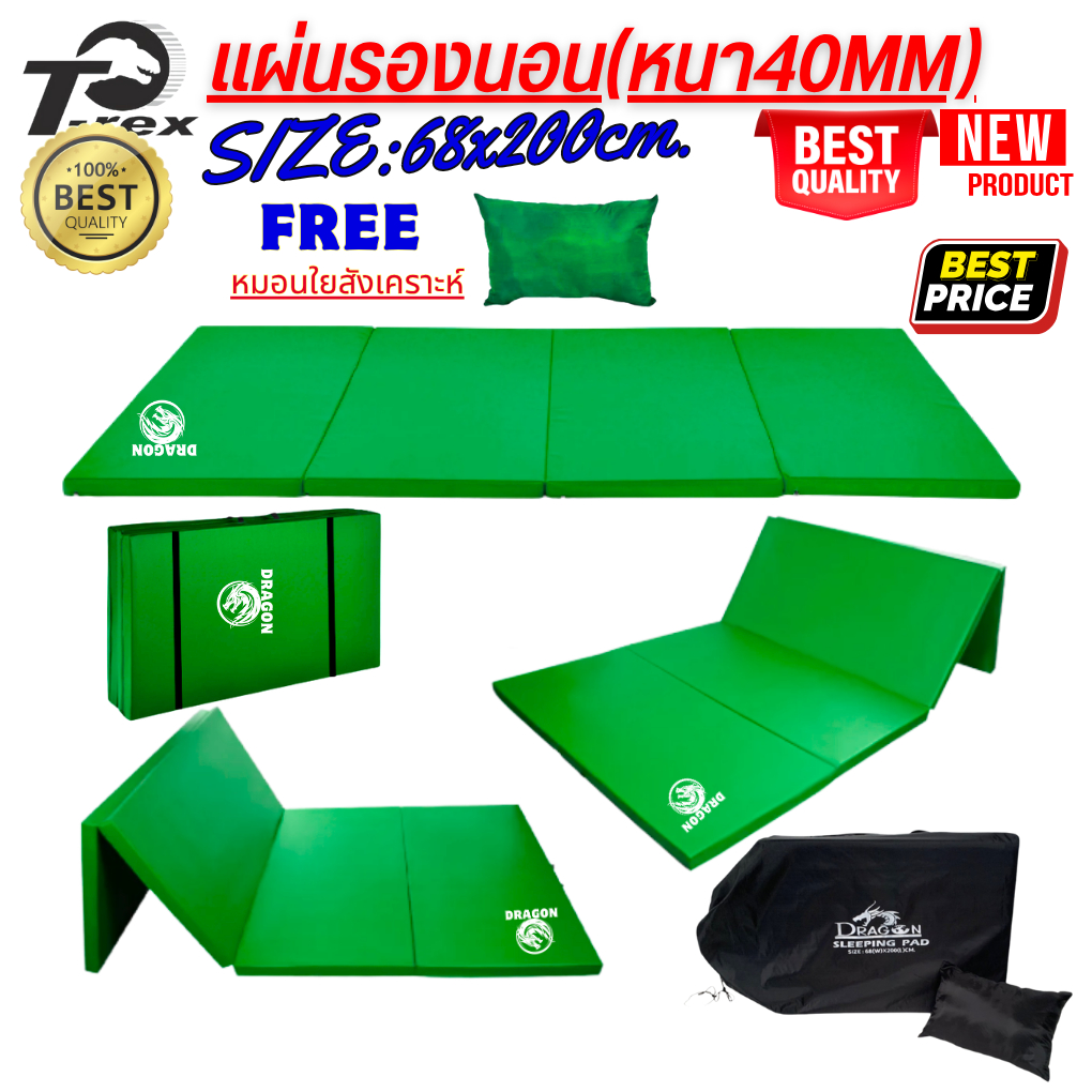 แผ่นปูรองนอนรุ่น-ดราก้อน1(แบบสีพื้น) มีความหนา 20mm/40mm ขนาดกว้าง68xยาว200ซม. มีกระเป๋าเก็บ ฟรีหมอน ถอดซักได้