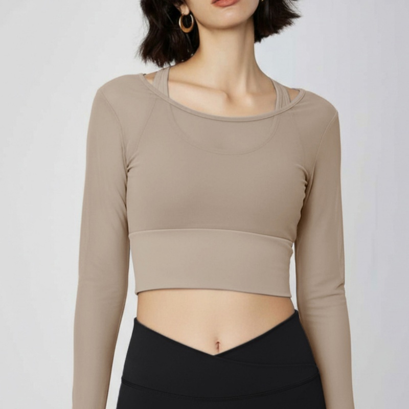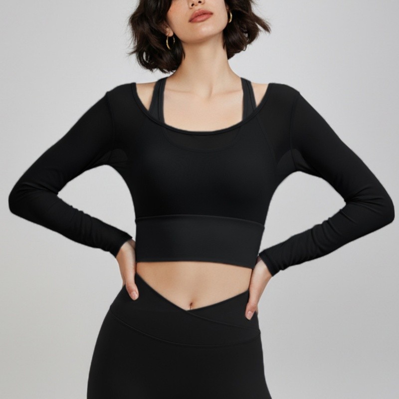 L.CIRCLE เสื้อยอก้าแขนยาวแห้งเร็วพร้อมแผ่นเสริม bust support ด้านใน