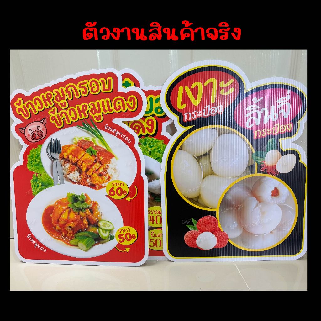 ป้ายไดคัต ฟิวเจอร์บอร์ด แก้ไขข้อความได้ ใส่ราคาได้ รายละเอียดงาน ⭕งานปริ้นความละเอียดสูง สีสด ทนแดด ทนฝน ⭕ฟิวเจอร์บอร์ดหนา 4 mm. (ไม่บาง) ⭕ความคงทนสีอยู่ได้ประมาณ 2-3 ปี ไม่ซีดเร็ว ?อ่านรายละเอียดก่อนกดสั่งซื้อจ้าาา ด้านล่าง ?????????? ถ้าจ
