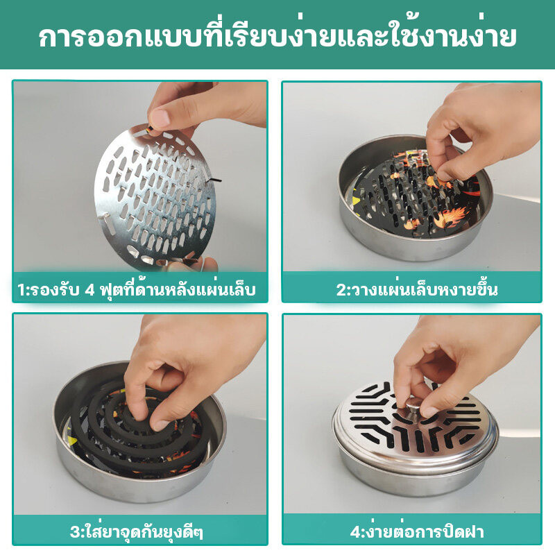ที่ใส่ยากันยุง ที่วางยากันยุง แบบขด ถาดใส่ยากันยุง มีฝาปิด ทำจากสแตนเลสอย่างดี ป้องกันเศษยากันยุงตกใส่พื้น