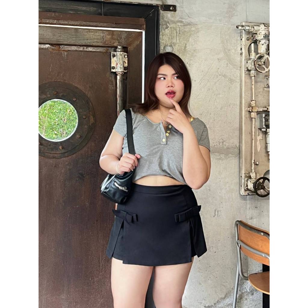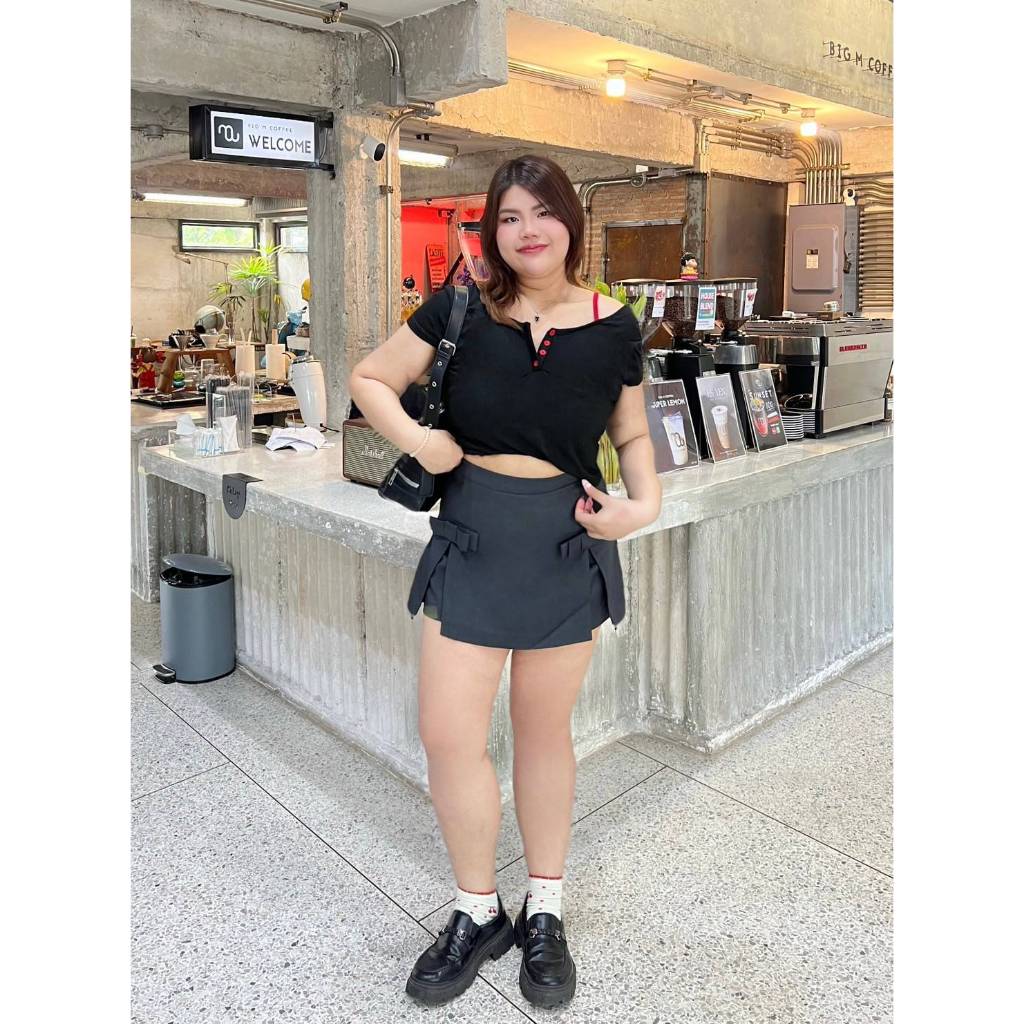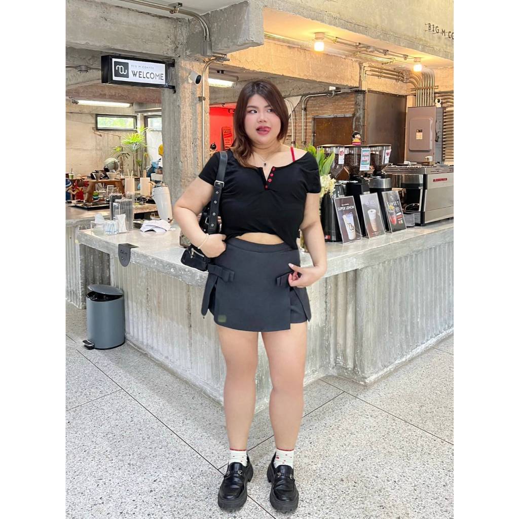CiCi Plus+ (712) กระโปรงกางเกงขาสั้น detail แต่งผ่าด้านหน้าพร้อมมีกระเป๋าหลอกด้านหลังสไตล์เกาหลี