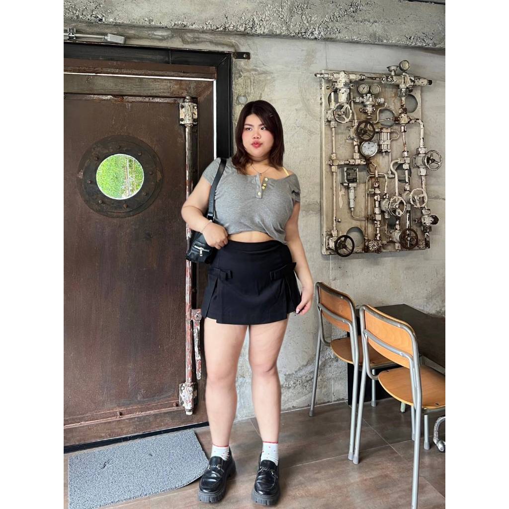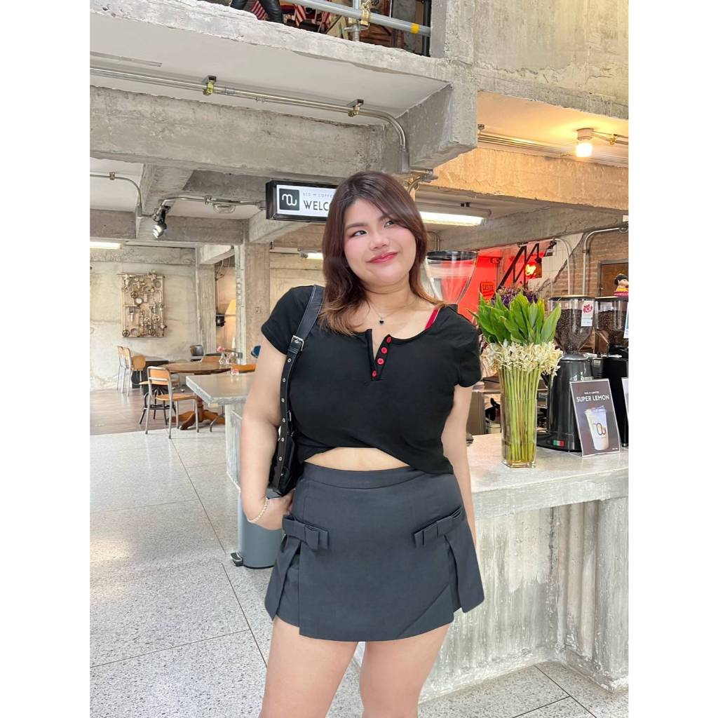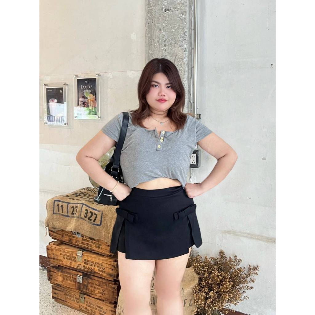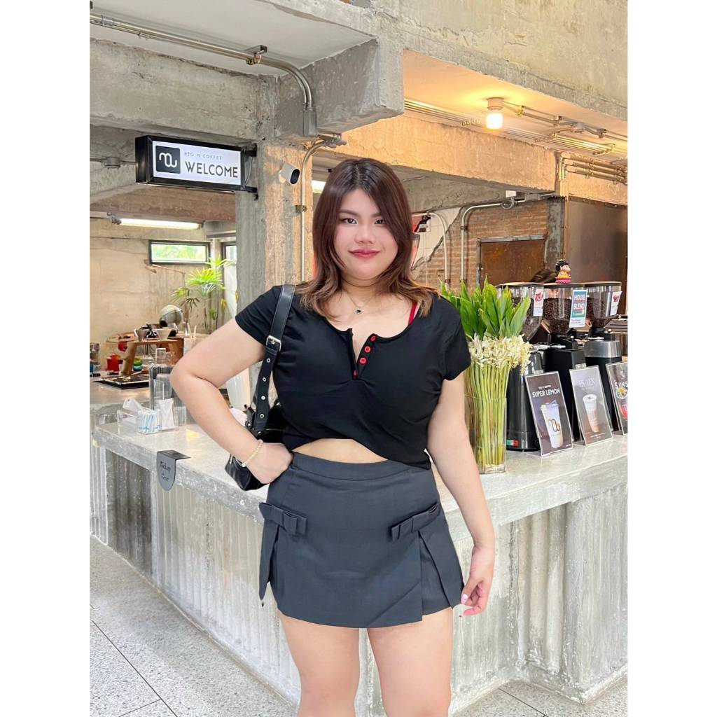 CiCi Plus+ (712) กระโปรงกางเกงขาสั้น detail แต่งผ่าด้านหน้าพร้อมมีกระเป๋าหลอกด้านหลังสไตล์เกาหลี