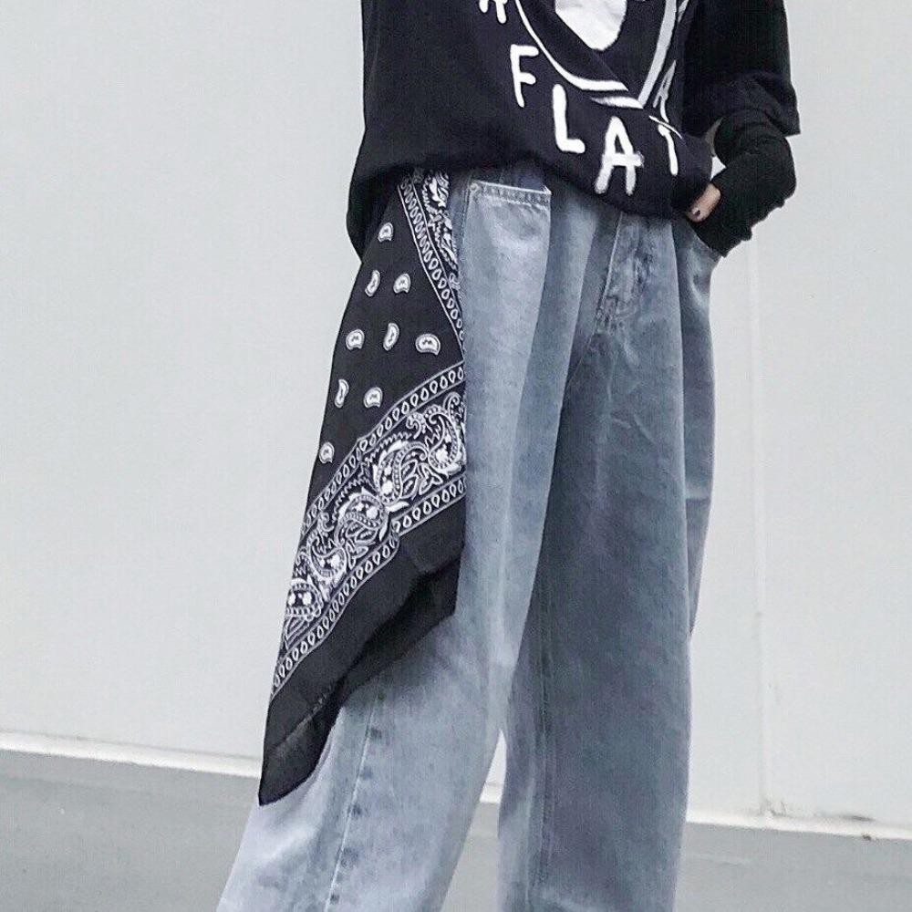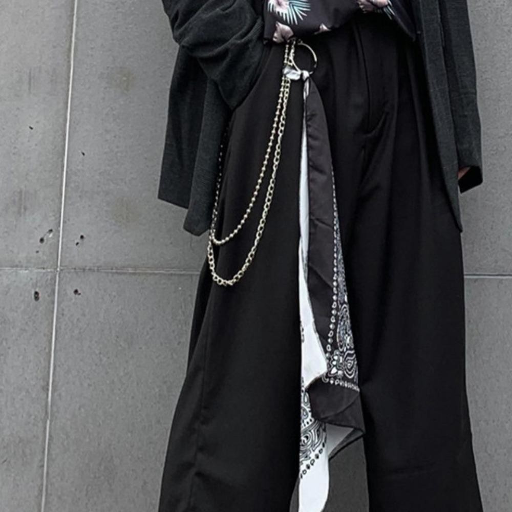 โซ่เอวโลหะสไตล์สตรีทเกาหลี กับกางเกงยีนส์หรือเป็นผ้าพันคอดesignทรงสี่เหลี่ยม