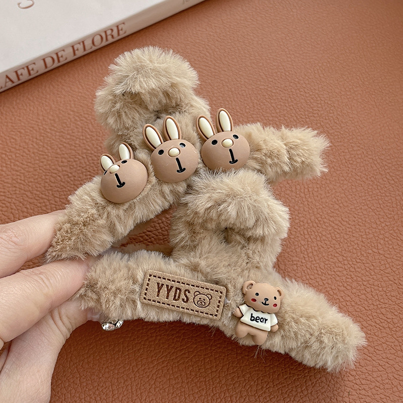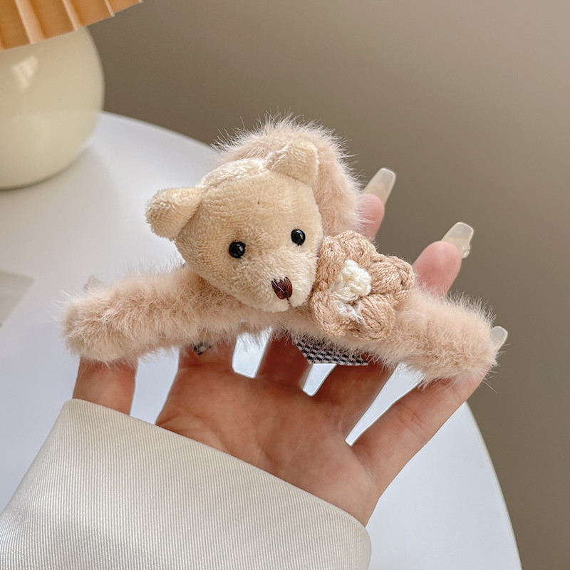 แฟชั่นฤดูใบไม้ร่วงฤดูหนาวตุ๊กตากิ๊บน่ารักหมีผมหนีบอุปกรณ์ผม