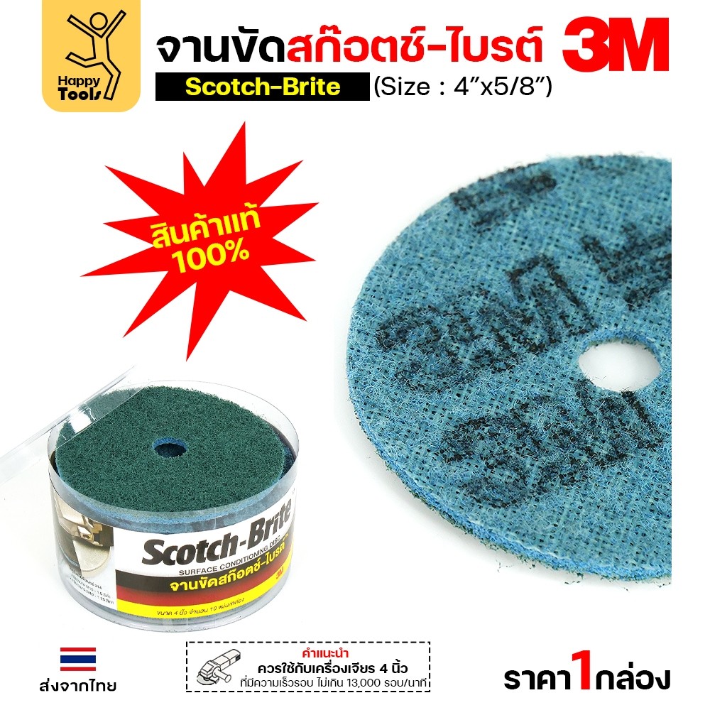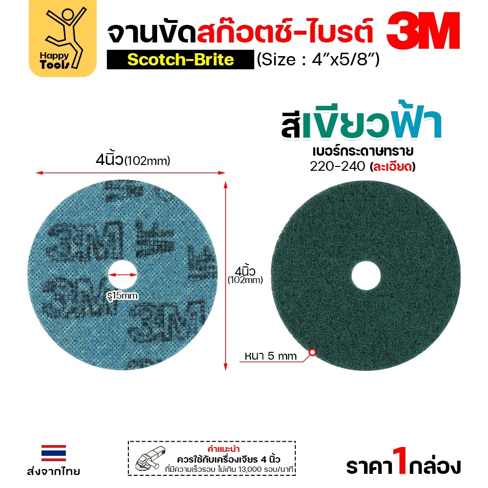 3M สก๊อตช์ไบรต์ (กลอ่งละ 10 แผ่น) จานขัดไนล่อน VFN เขียวฟ้า 4″x5/8″ จานขัดสก๊อตไบร์ท(มีรู)