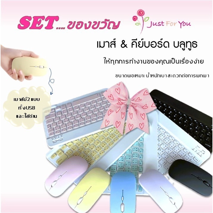 【รับประกัน 1 ปี】จากไทย คีย์บอร์ดไร้สาย เม้าส์ไร้สาย คีย์บอร์ด คีย์บอร์ดบลูทูธ เม้าส์บลูทูธ
