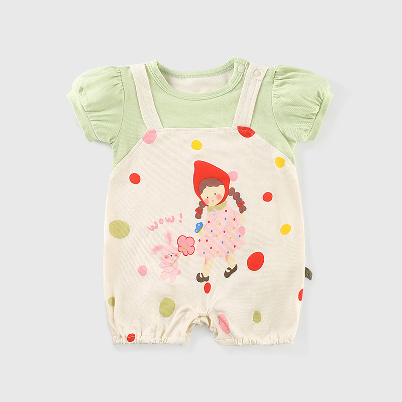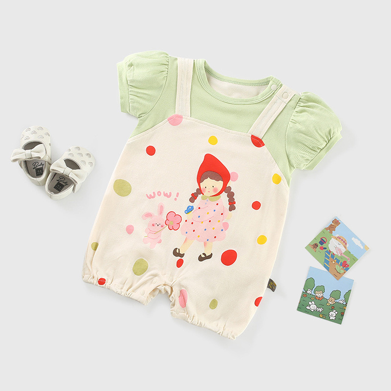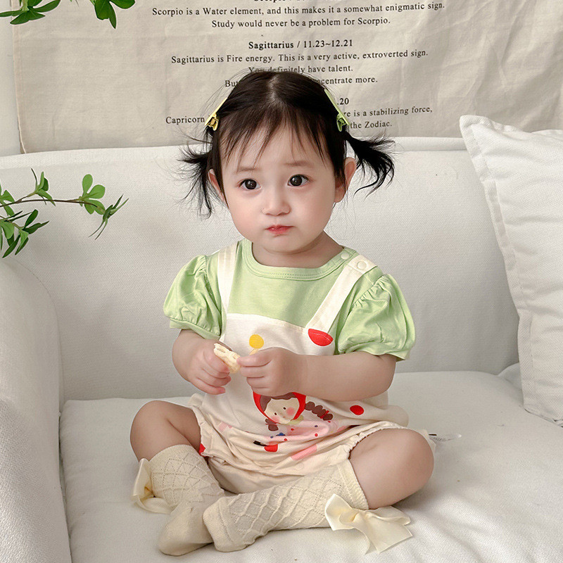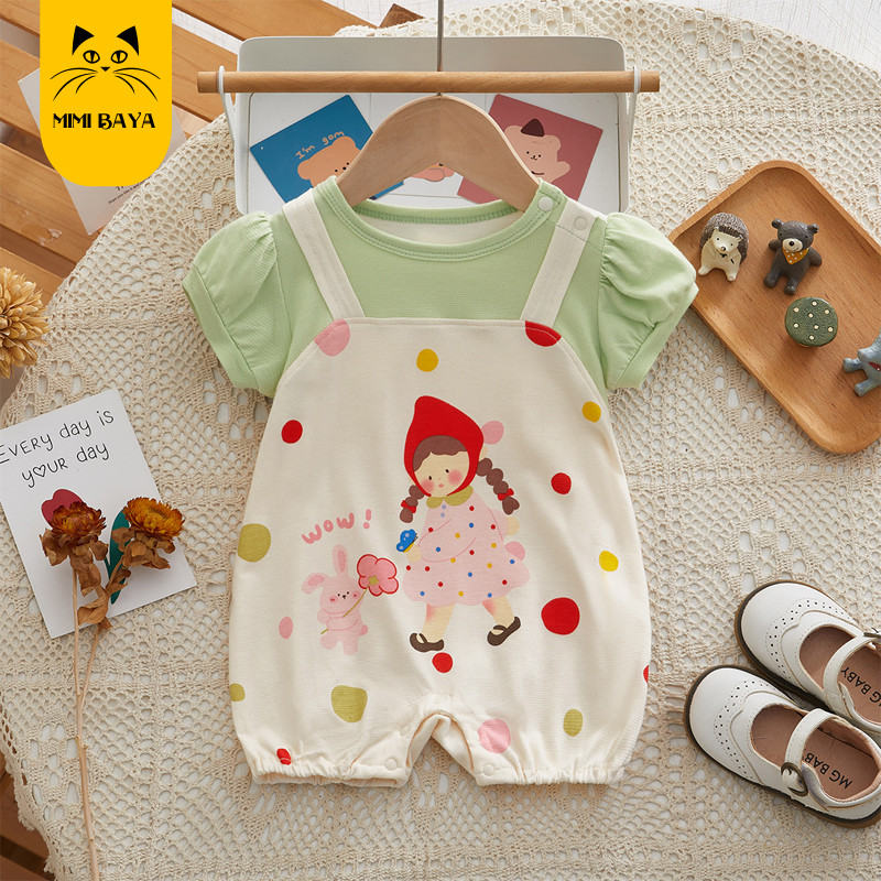 ฤดูร้อนใหม่เสื้อผ้าเด็กสาวบอดี้สูทแขนสั้น 0-24 เดือนเด็กผ้าฝ้ายแท้สาวการ์ตูนพิมพ์ ชุดรอมเปอร์ สุดน่ารักสไตล์เกาหลี