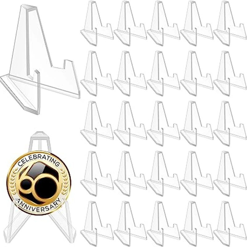 ขาตั้งจอแสดงผลเหรียญอะคริลิคขนาดเล็ก-ชั้นวางขาตั้งสามเหลี่ยมสําหรับการ์ดโทรศัพท์ตกแต่งบ้านและอื่นๆ-ขาตั้งโปร่งใสสําหรับรายการที่ระลึก