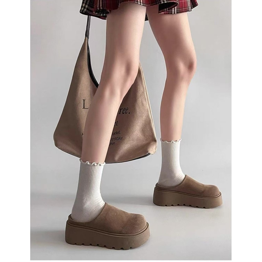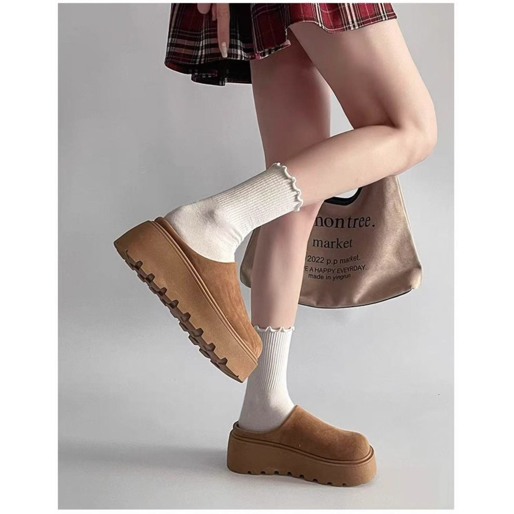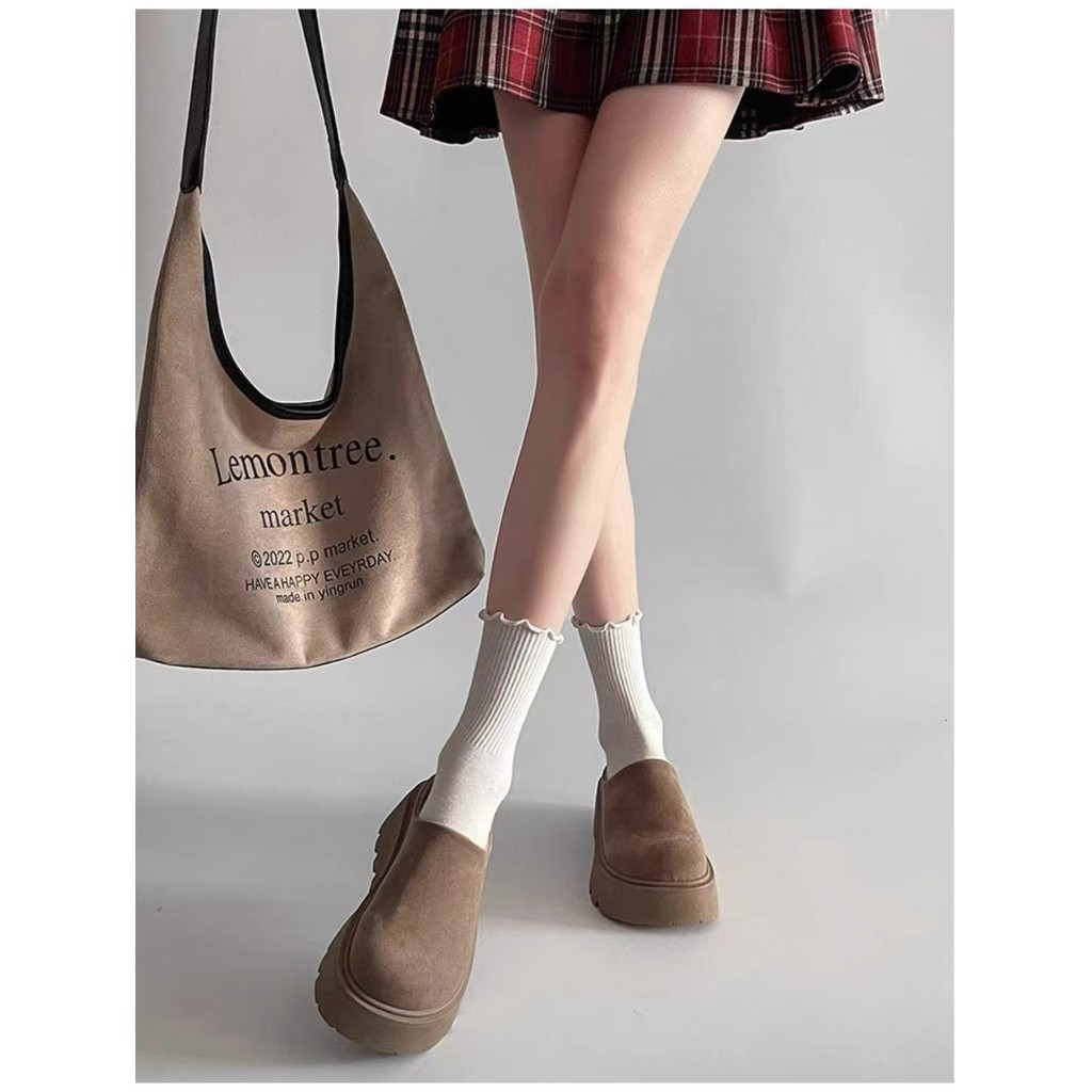 พร้อมส่งจากไทย TX645 รองเท้าหนังกลับแบบสวมขี้เกียจ หนา2.5นิ้ว ดีไซน์ย้อนยุค สำหรับผู้หญิง(แนะนำ +1 ไซด์ค่ะ)
