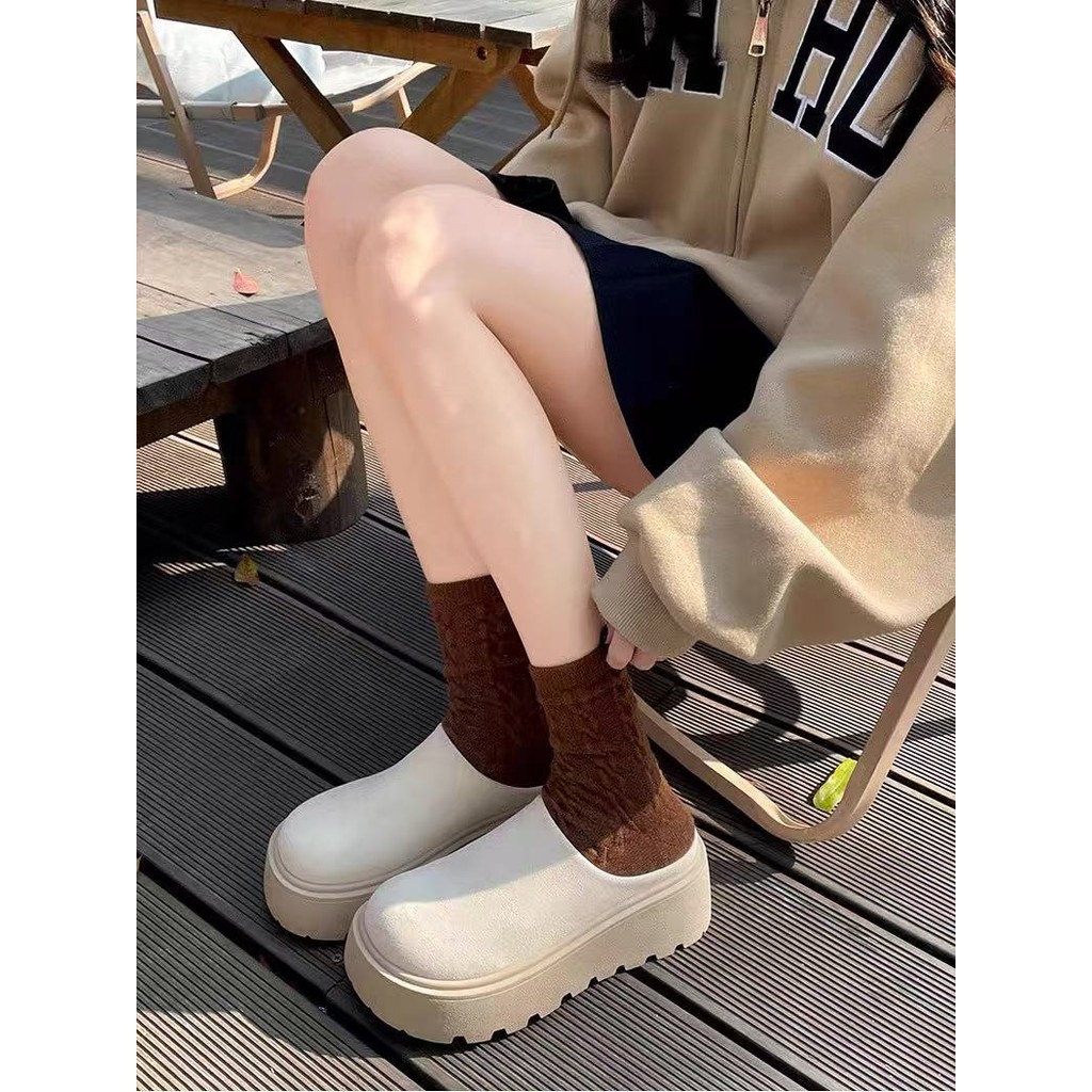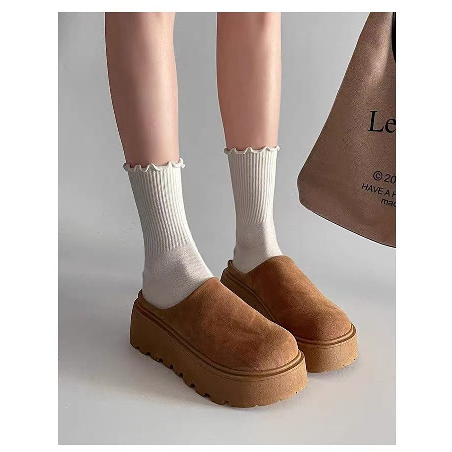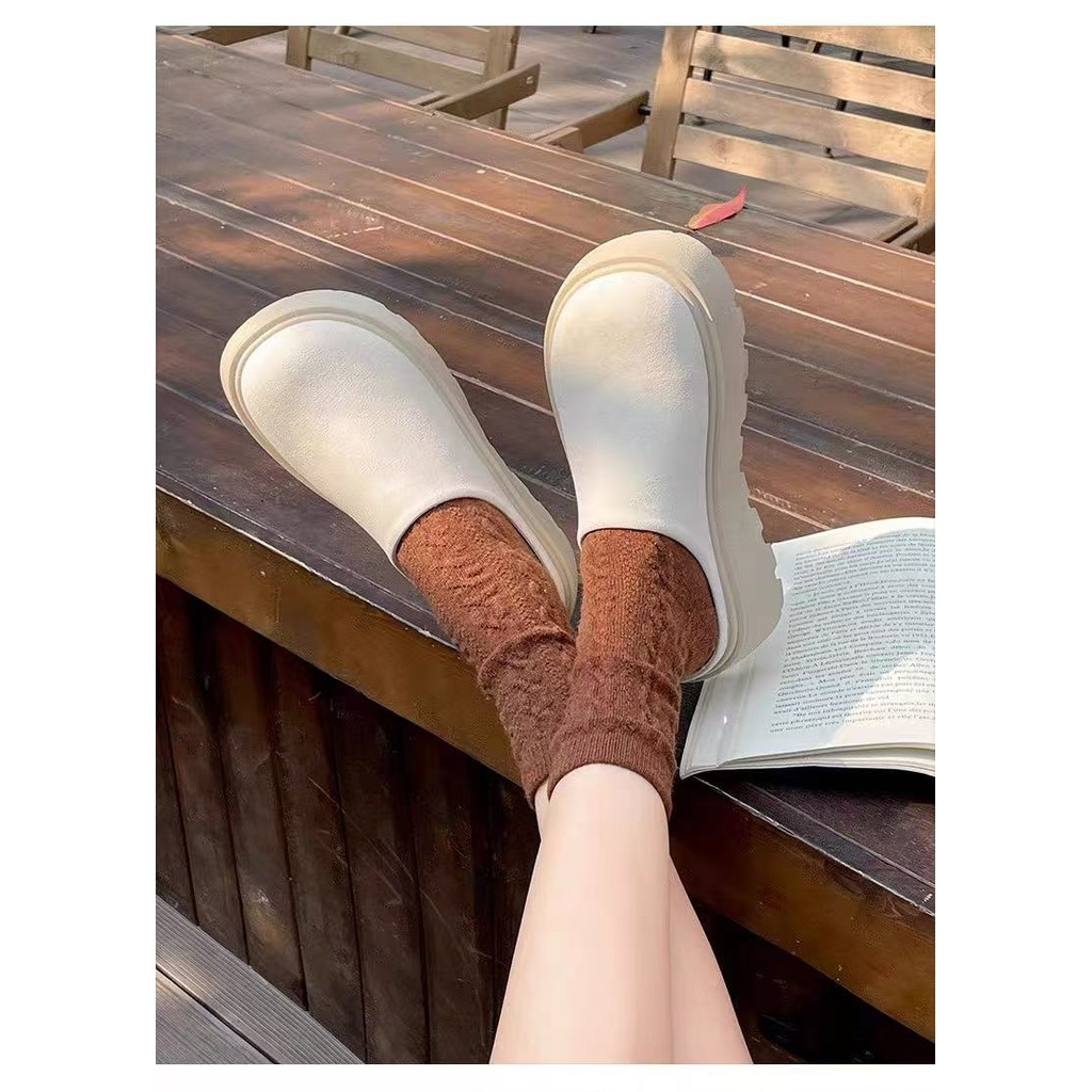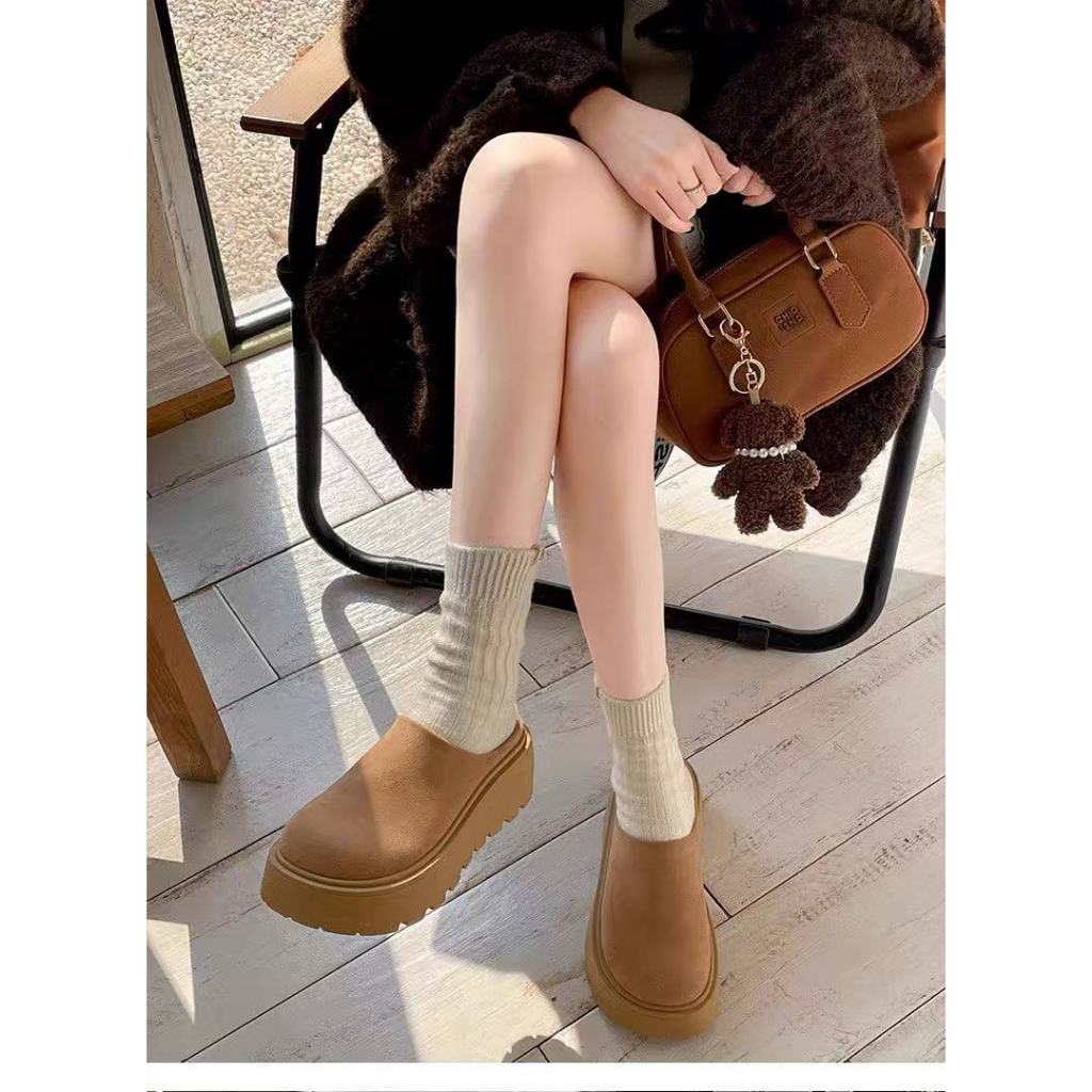 พร้อมส่งจากไทย TX645 รองเท้าหนังกลับแบบสวมขี้เกียจ หนา2.5นิ้ว ดีไซน์ย้อนยุค สำหรับผู้หญิง(แนะนำ +1 ไซด์ค่ะ)