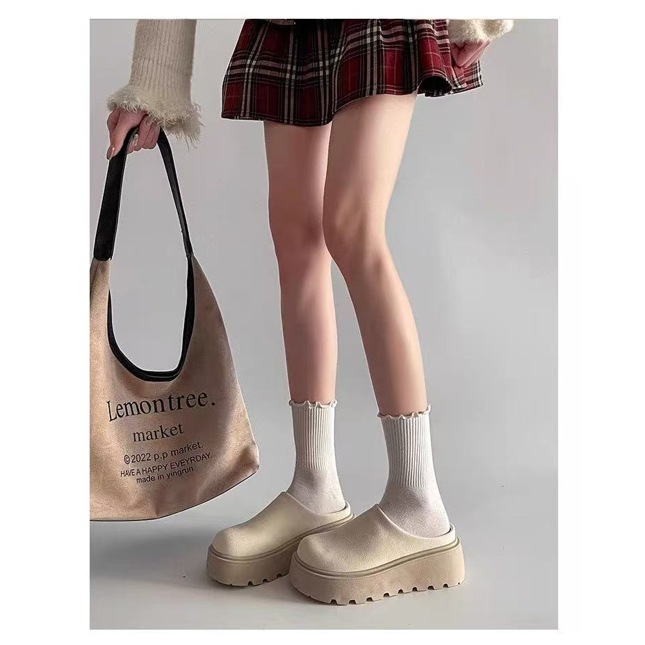 One for all พร้อมส่งจากไทย TX645 รองเท้าหนังกลับแบบสวมขี้เกียจ หนา2.5นิ้ว ดีไซน์ย้อนยุค สำหรับผู้หญิง
