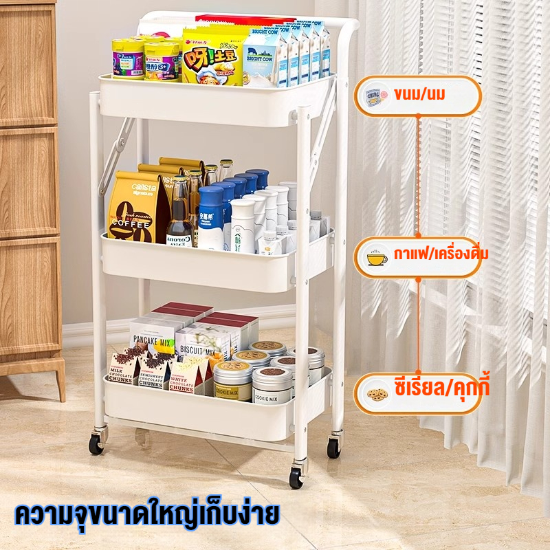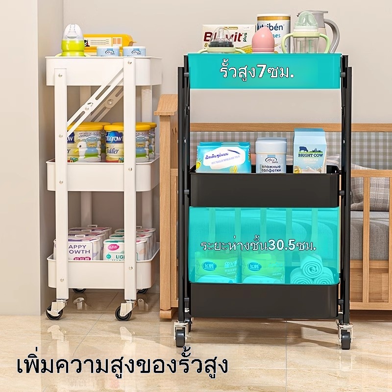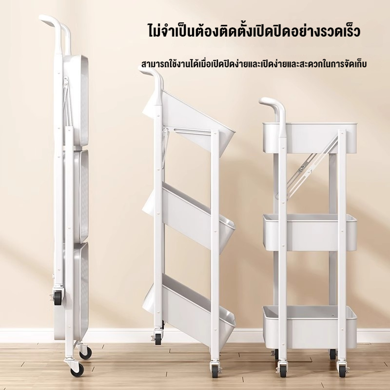 ชั้นวางของพับได้ มีล้อ สีพาสเทล ชั้นอเนกประสงค์ วัสดุเหล็ก ตกแต่งบ้าน ร้านเสริมสวย