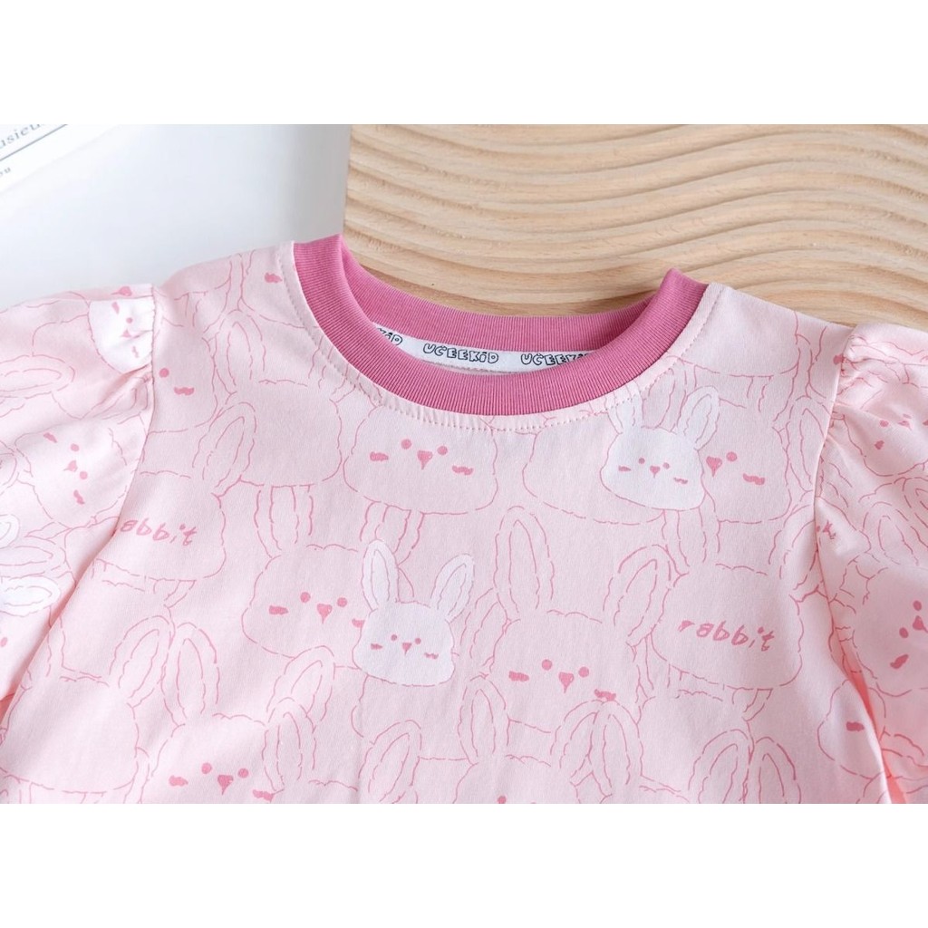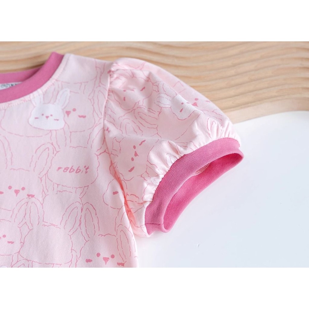 (((80-140 ซม.) Girls Bunny Full พิมพ์เสื้อยืดแขนสั้นเด็กผู้หญิง All-Match การ์ตูนเสื้อยืด Top