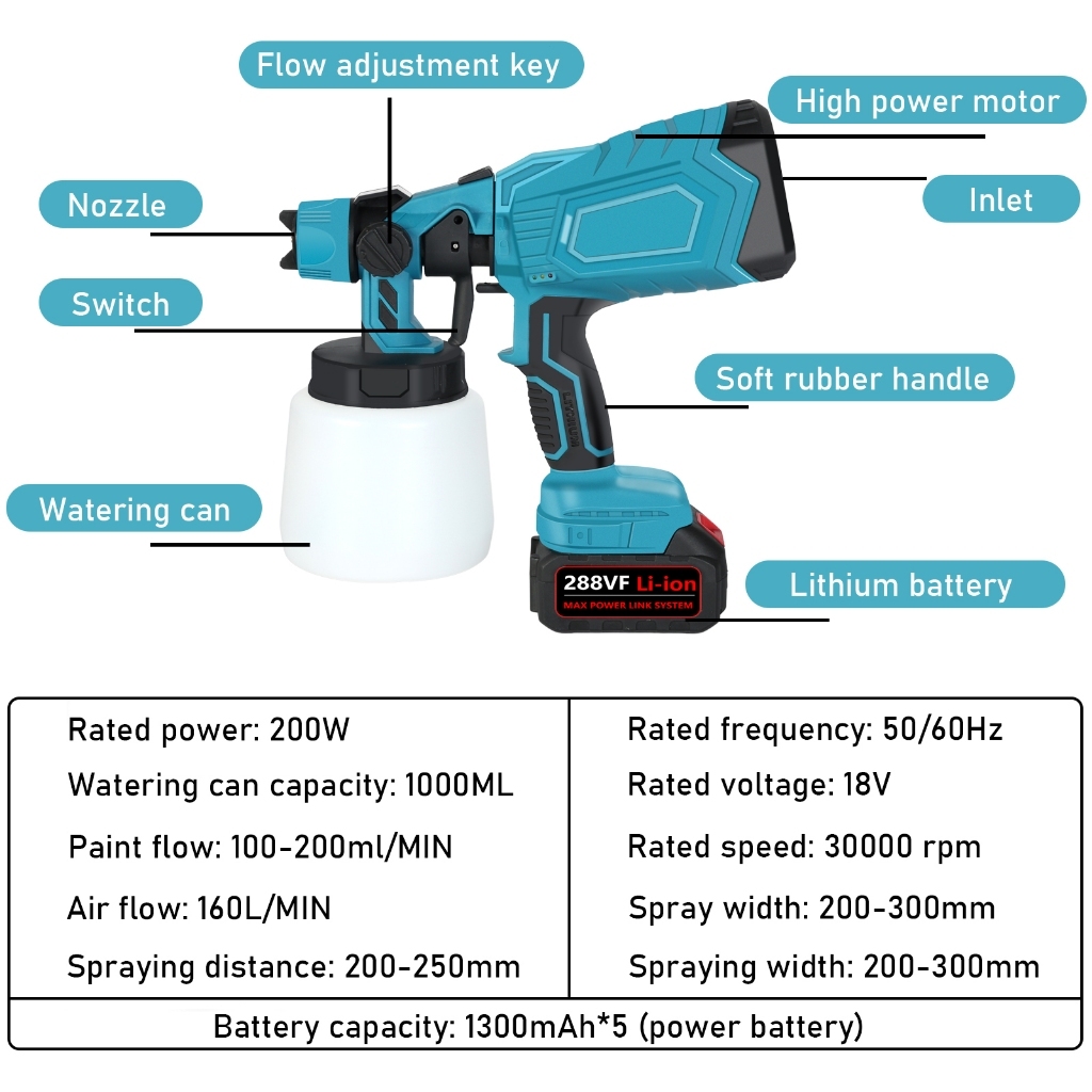 พ่นสีไร้สาย 3500W สีพ่นรถยนต์ เครื่องพ้นสี(ใช้ได้ทั้งสีน้ำ+สีน้ำมัน)พ่นสีไฟฟ้า 1000ML เครื่องพ่นสีไฟฟ้าไร้สาย กาพ่นไฟฟ้า