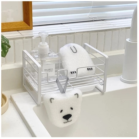 ที่วางฟองน้ำ ตะแกรงใส่ฟองน้ำ วางข้างซิงค์ ตะกร้าวางฟองน้ำแบบมีถาดรองด้านล่าง ชั้นวางอุปกรณ์ล้างจาน
