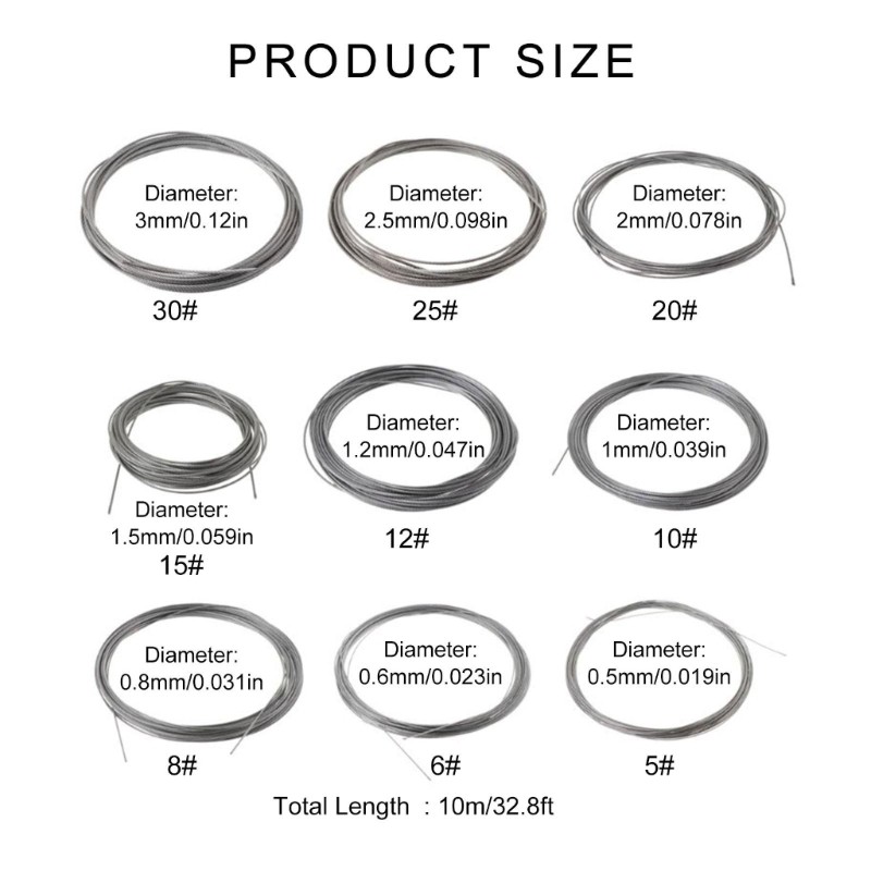 เชือกลวดสแตนเลส 10 ม. 304 0.5 / 0.6 / 0.8 / 1 / 1.2 / 1.5 / 2 / 2.5 / 3 มม. ป้องกันสนิม
