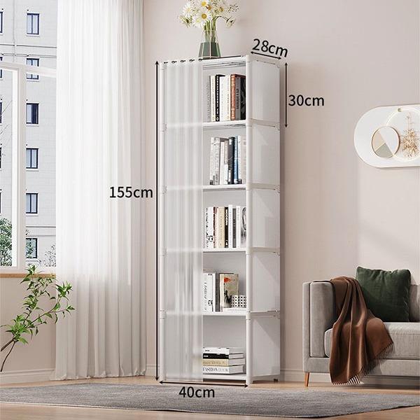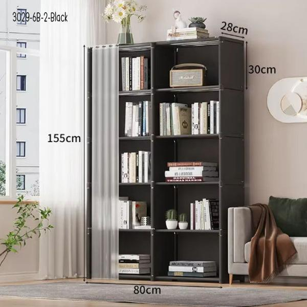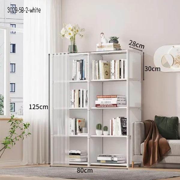 YY ชั้นวางหนังสือ DIY โครงเหล็กชั้นผ้ากันน้ำ พร้อมม่านปิด ประกอบง่าย แข็งแรง 3029