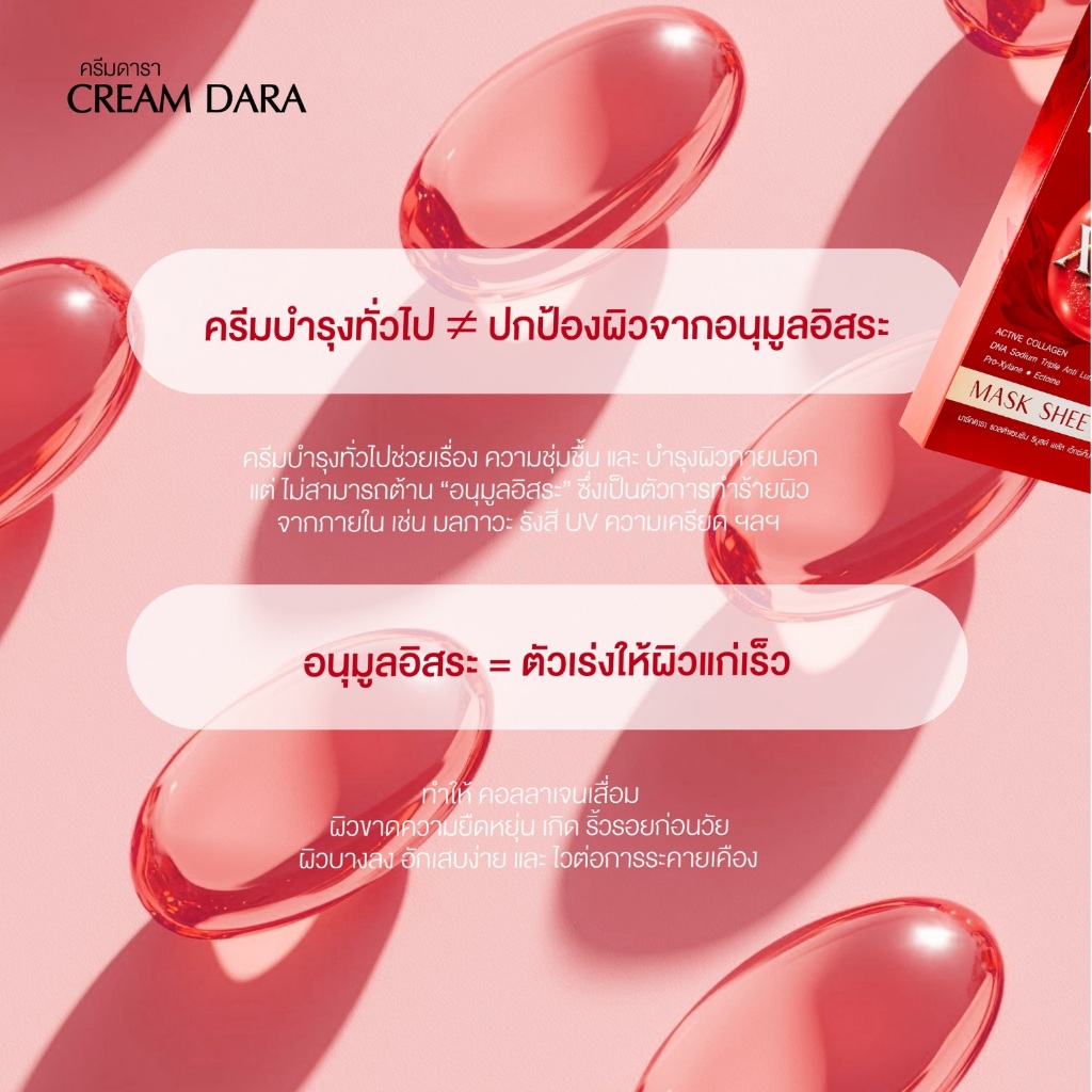 ด้วย Astaxanthin มีสารต้านอนุมูลอิสระ ช่วยเรื่องลดเลือนริ้วรอยแห่งวัย วิตามิน ซี ปรับผิวให้สว่างกระจ่างใส