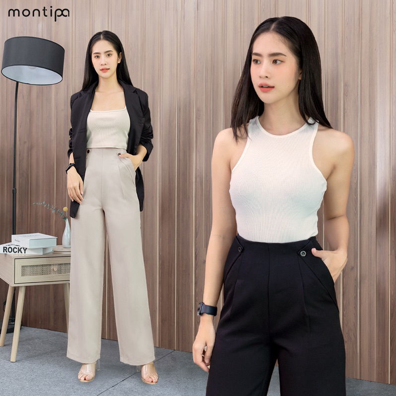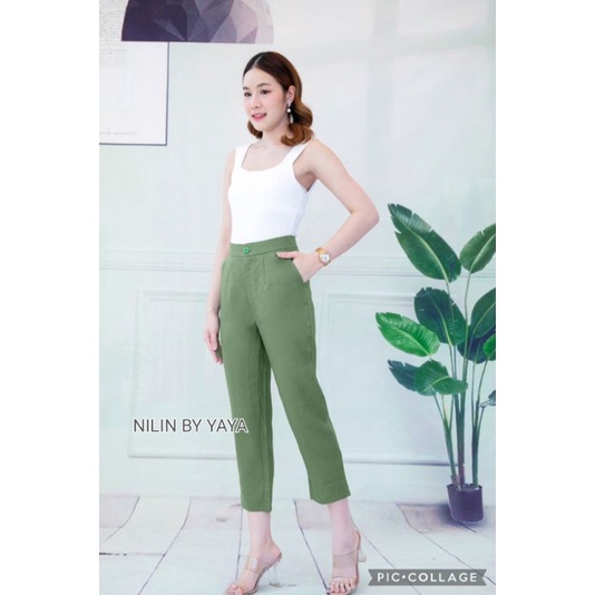 ชื่อ: กางเกงครอปขากว้างเอวยางยืด
