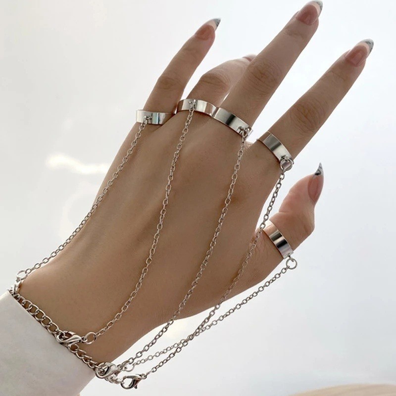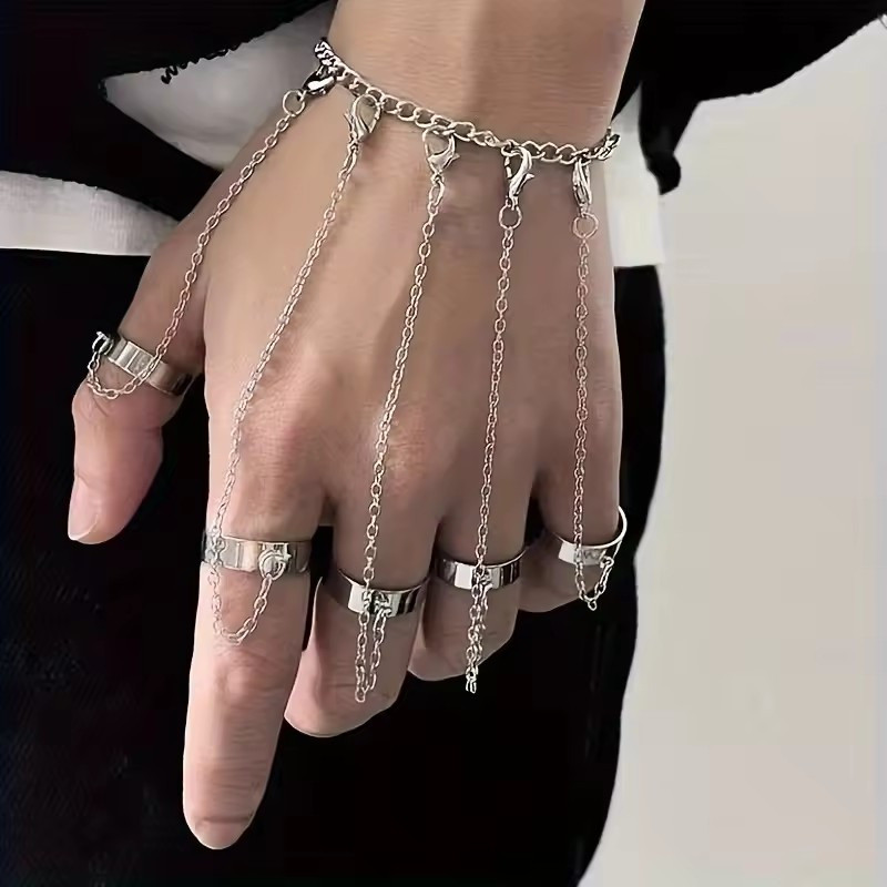 [3-5 วันมาถึง] Punk เปิดแหวนโซ่ทรงจํา Unisex สร้อยข้อมือแบบปรับได้, เครื่องประดับโกธิคสําหรับผู้ชายผู้หญิง | โซ่ 10 ซม. + เส้นรอบวง 18 + 5 ซม