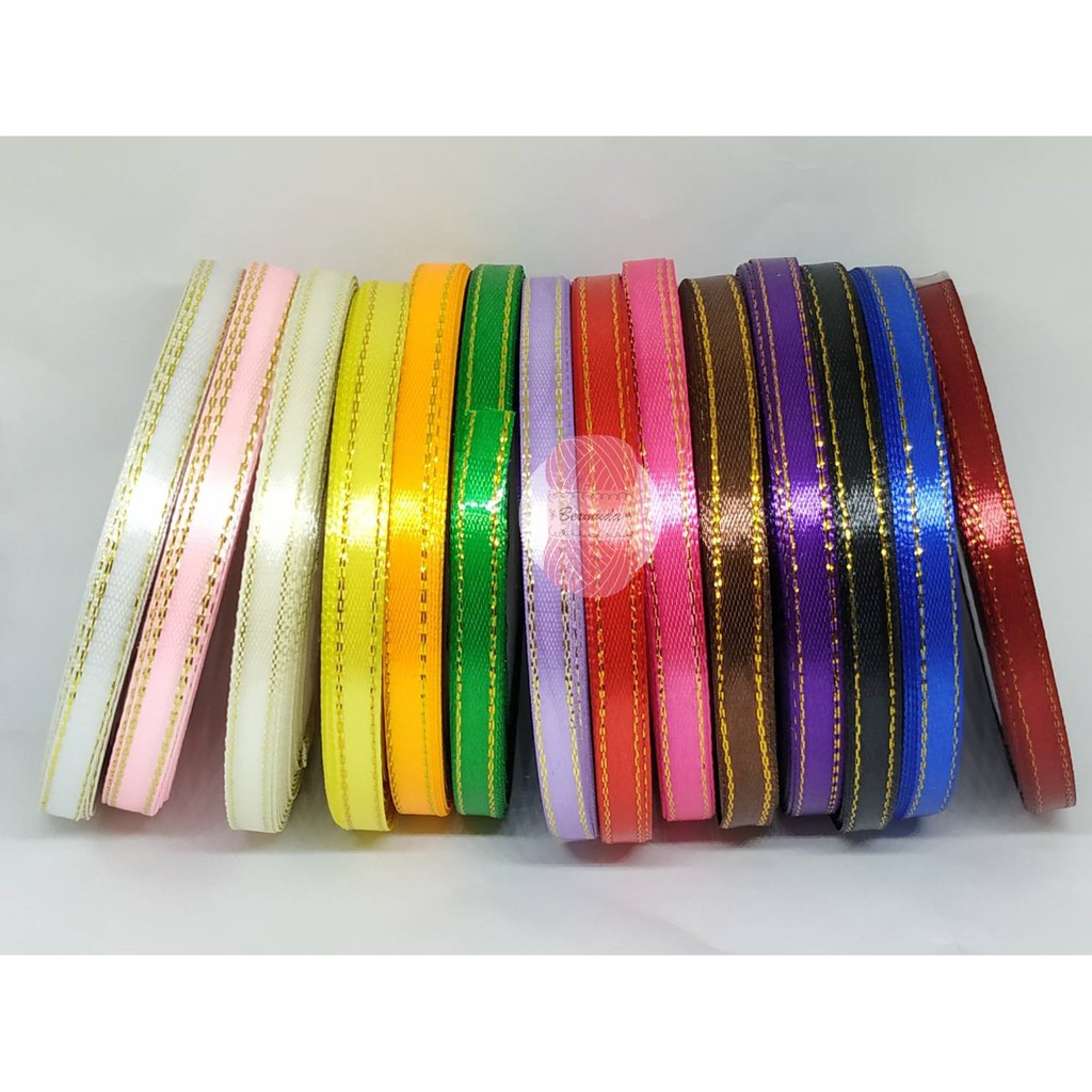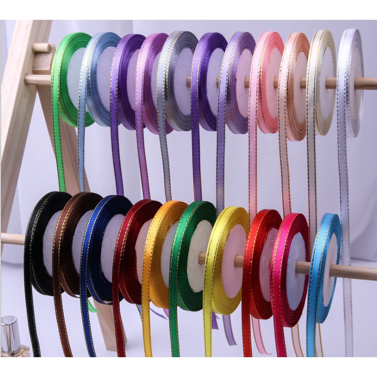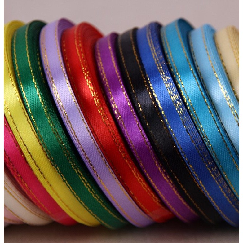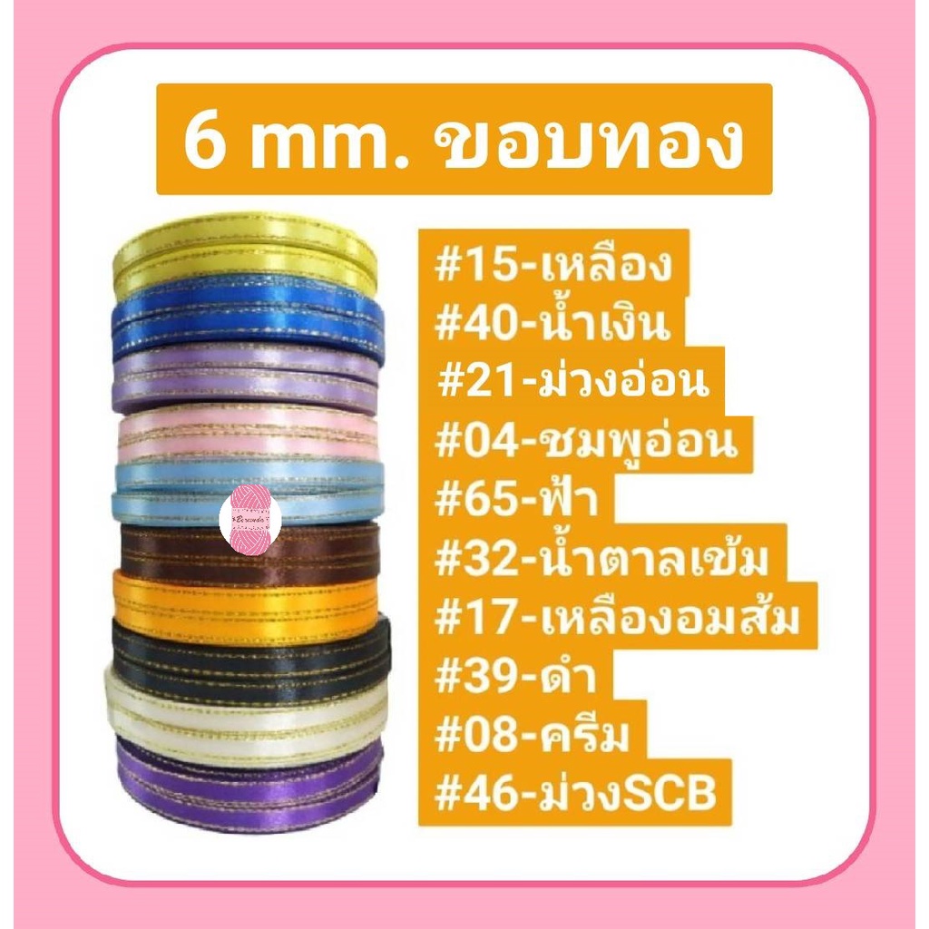 ริบบิ้นผ้าซาติน/ผ้าต่วนตัดขอบสีทอง/เงิน SATIN RIBBON 6 mm. 25 สี