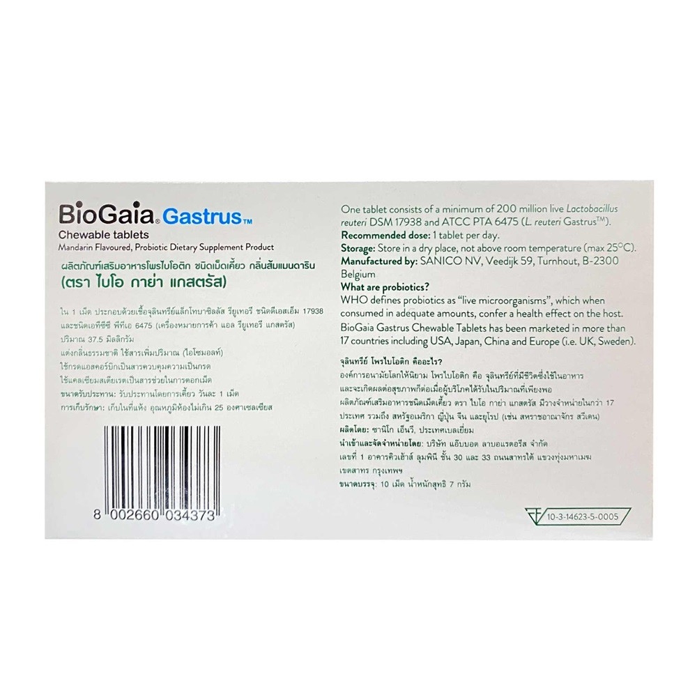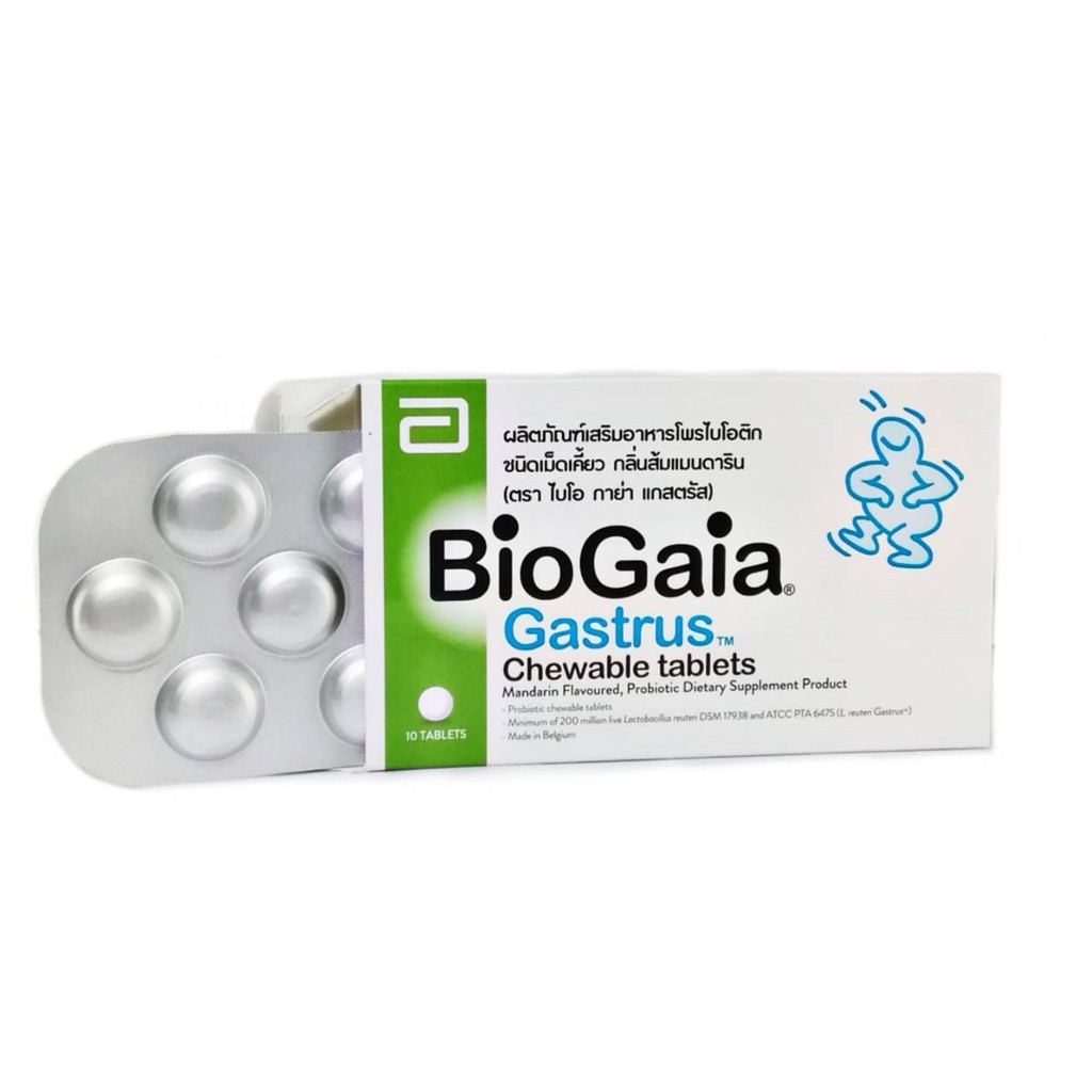 ไบโอ กาย่า แกสตรัส โพรไบโอติก กลิ่นส้มแมนดาริน ผลิตภัณฑ์เสริมโพรไบโอติก 1 กล่อง บรรจุ 10 เม็ด เป็น โพรไบโอติกที่พัฒนามาจากจุลินทรีย์ในน้ำนมแม่ เสริมระบบขับถ่ายของเด็ก รูปแบบเม็ดเคี้ยว
