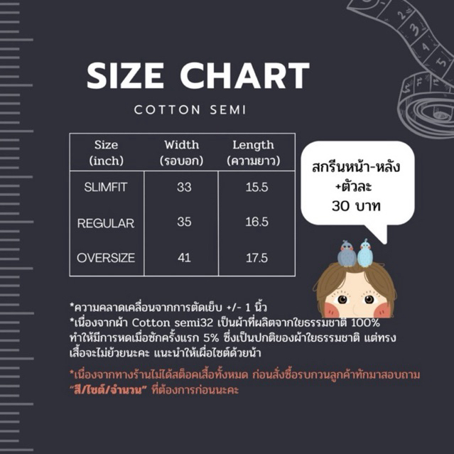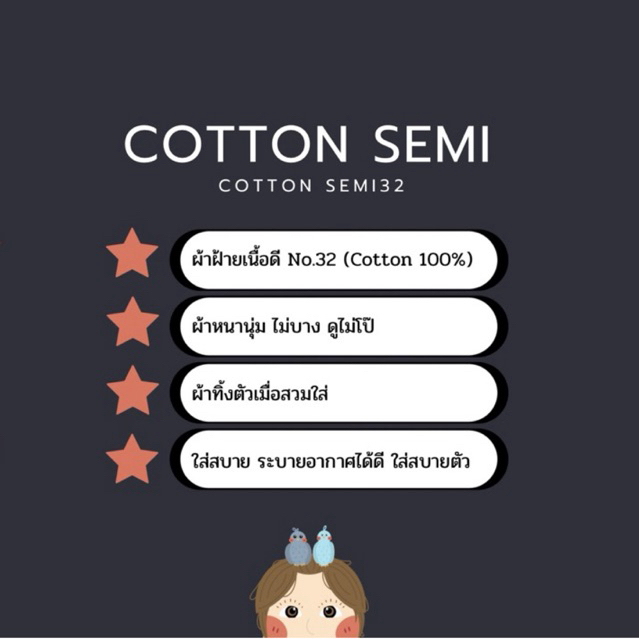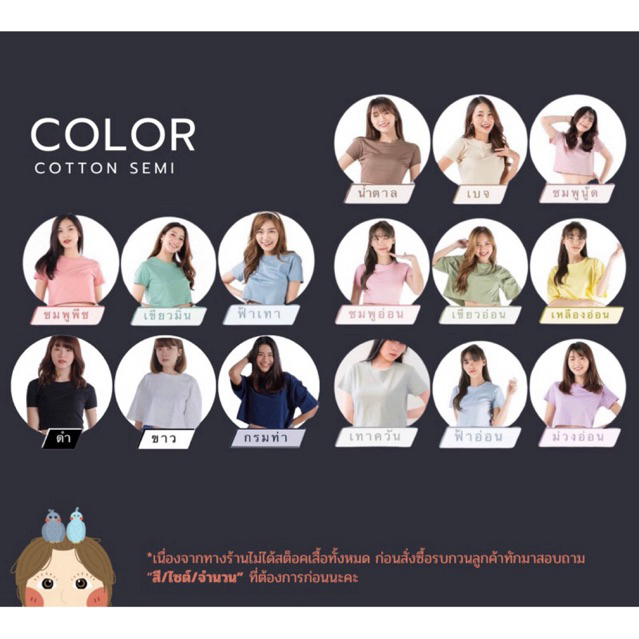 ⭐️ เนื่องจากทางร้านไม่ได้สต็อคเสื้อรุ่น Cotton semi ทั้งหมด : รบกวนลูกค้าทักมาถาม “ไซต์ สี จำนวน” ที่ต้องการก่อนกดสั่งซื้อเข้ามาด้วยนะคะ ?